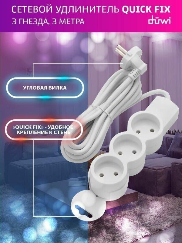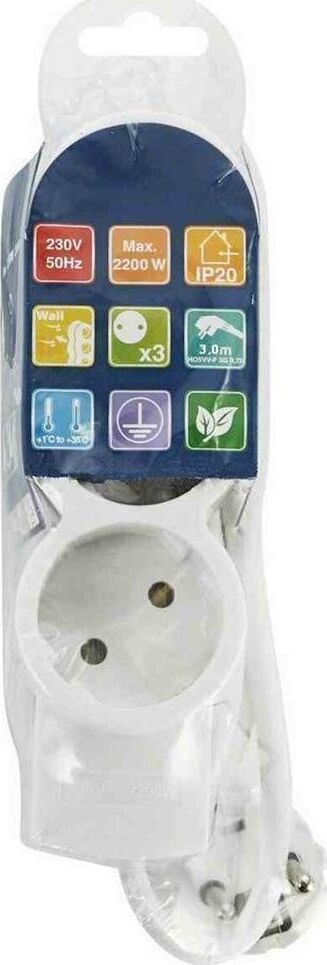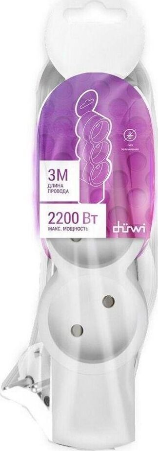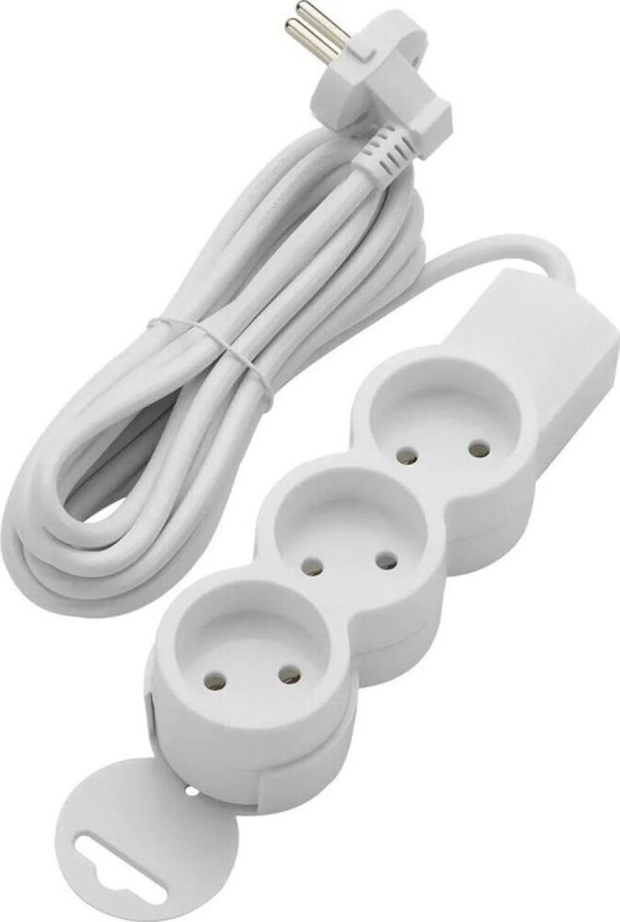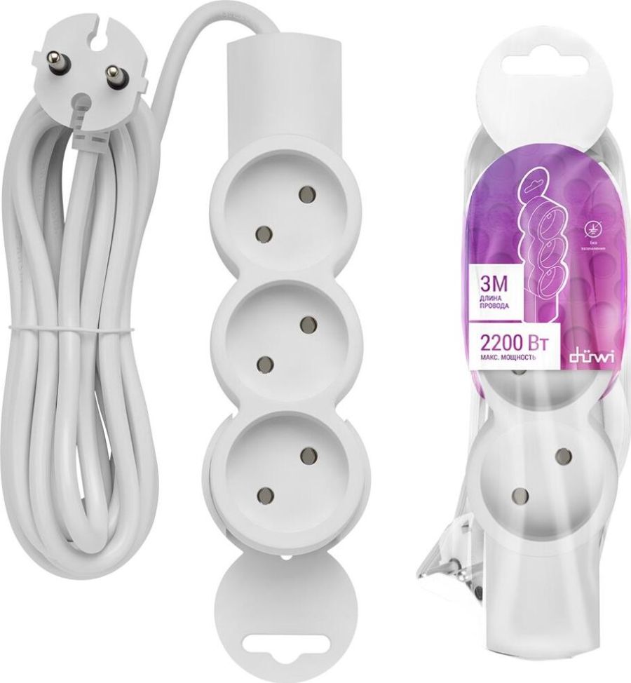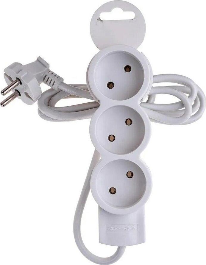 Удлинитель бытовой, без заземления, количество гнезд - 3, подключаемая мощность : 2200 Вт, степень защиты: IP20, тип провода и сечение: 2Gх0,75, цвет: белый, длина: 3,0 м.