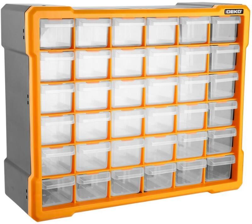 Система хранения DEKO ;RDKPS36 ;выполнена в форме вертикального кейса с выдвижными ящиками, служит для хранения и транспортировки крепежных изделий. Качественное исполнение гарантирует долгий срок службы ящика. Имеет 36 съемных секций. Система хранения выполнена из пластика.Габаритные размеры (см): 41х14х32,5Размеры ячеек (см): ;12х5.7х4.5