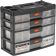 Органайзер Stels 90728 размером 310 х 150 х 260 мм, из пластика, имеет 4 секции с выдвижными лотками и используется для хранения крепежных элементов, принадлежностей для рукоделия, снастей и т.д. Обеспечивает быстрый доступ к предметам, позволяет избежать их перемешивания и утери. Пригодится в гараже, мастерской, будет полезен в домашнем хозяйстве. Преимущества Надежная защита — корпус из высококачественного полипропилена препятствует попаданию влаги и пыли.Вместительность — в четырехъярусном органайзере помещается большое количество различных деталей.Продуманная организация внутреннего пространства — в каждый лоток можно установить разделители для сортировки предметов по размеру, это позволит создать до 28 отсеков.Удобное проведение монтажных работ — в крышке предусмотрены открытые секции для быстрого доступа к деталям.Комфортная транспортировка — благодаря рукоятке и защелкам, предотвращающим случайное открытие, органайзер удобно перемещать.