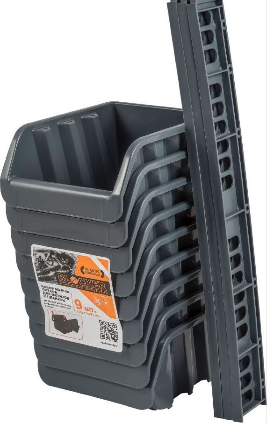 серия Master, с крепежом, серо-свинцовый, 9 шт., 167х143х350 (BR3743) Лотки помогают организовать раздельное хранение метизов разного типа, размера и быстро находить необходимые изделия. Идеальны для использования дома, на даче, в гараже, мастерской. Для экономии места на рабочем столе лоток можно подвесить на шину (планку), входящую в комплект, или установить сверху на другой лоток.