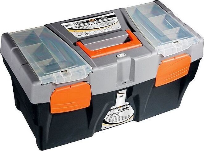 STELS Ящик для инструмента 20" 500х260х260 мм, пластик 90705 Инструментальный ящик с дополнительными секциями. Ящик размером 50 х 26 х 26 см (20") изготовлен из полипропилена, имеет два встроенных органайзера с крышкой и съемный 3-х секционный лоток. Предназначен для хранения и транспортировки инструмента, расходных материалов и крепежных изделий, а также любых сходных по габаритам бытовых товаров. Материал полипропилен Особенности наличие лотка Габариты 500 x 260 x 260 мм