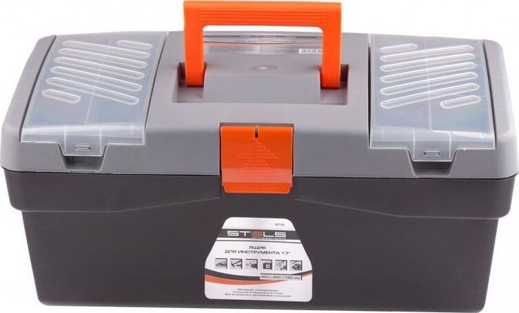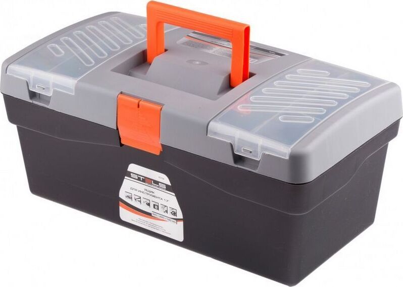 STELS Ящик для инструмента 17" 420х220х180 мм, пластик 90704 Инструментальный ящик с дополнительными секциями. Ящик размером 42 х 22 х 18 см (17") изготовлен из полипропилена, имеет два встроенных органайзера с крышкой и съемный 3-х секционный лоток. Предназначен для хранения и транспортировки инструмента, расходных материалов и крепежных изделий, а также любых сходных по габаритам бытовых товаров. Материал полипропилен Особенности наличие лотка Габариты 420 x 220 x 180 мм