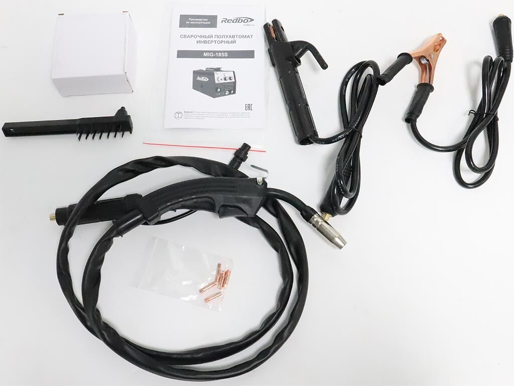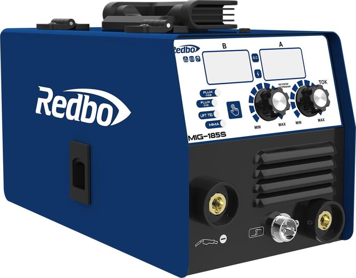 Новый сварочный инвертор — ваш надежный помощник в любой работе Многофункциональность позволит работать профессионалу и опытному любителю с несколькими режимами сварки, сварка флюсовой проволокой без газа (FCAW) и сварка штучным электродом (MMA) все в одном устройстве, может осуществлять сварку постоянным током неплавящимся электродом в среде защитного газа углеродистых и нержавеющих сталей -режим TIG (вентильная горелка в комплект не входит) . Легкий и компактный дизайн – удобно брать с собой на любой объект. Высокая стабильность и качество сварки. Энергосберегающая технология для экономии энергии. Подходит для использования в условиях подачи от альтернативных источников питания (генератор). Обеспечьте себе мощность и универсальность. Технические данные позволят производить массу работ в гараже, на даче, или производстве. MIG: 50/16,5-185/23,2; MMA: 20/20,8-185/27,4 Напряжение холостого хода - 55 В Максимальная потребляемая мощность MIG/MMA - 6.9 кВт