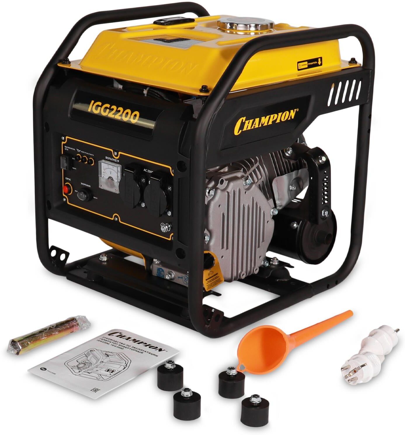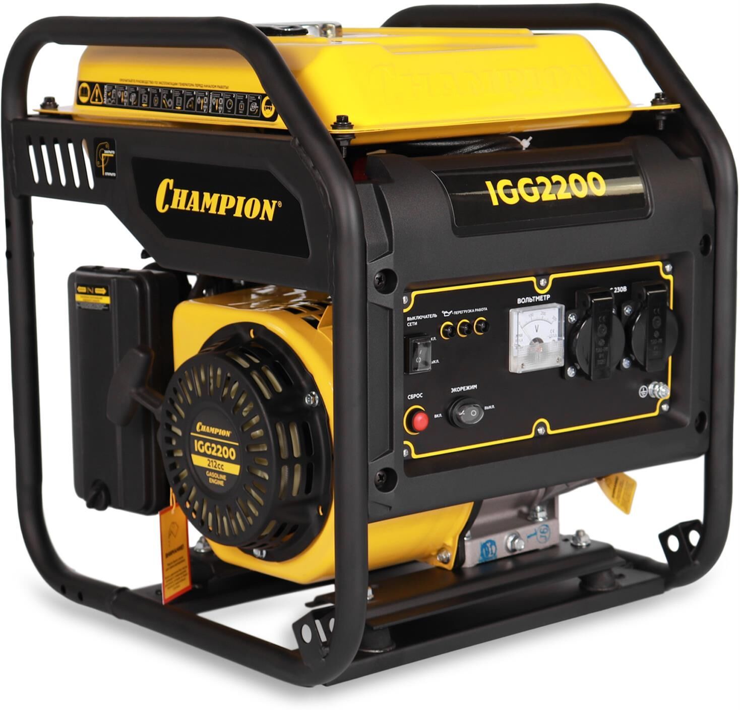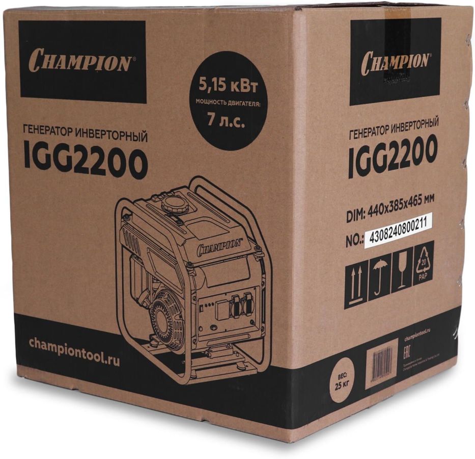 Мощность двигателя, (кВт/л.с.) 5.15/7 Объем двигателя, (см3) 212 Вес, (кг) 25 Исполнение Открытая рама Количество фаз/напряжение сети, (В/Гц) 1/230/50 Коэффициент мощности, (cosФ) 1 Максимальная мощность генератора, (кВт) 2.1 Максимальный расход топлива, (г/кВт ч)/(л/ч) ≤460/3.34 Материал обмоток ротора и статора Медь Номинальная мощность генератора, (кВт) 2 Объем картера, (л) 0.6 Объем топливного бака, (л) 7 Регулировка напряжения ШИМ Розетки, (В/А) 2 х 230/16 Тип генератора Инверторный, однофазный, переменного тока Тип двигателя/топливо Бензиновый, 4х-тактный/АИ-92 неэтилированный Тип преобразователя тока Инвертор Тип ротора Бесщеточный Тип стартера Ручной Уровень звукового давления, (дБ) 74 Уровень мощности звука, (дБ) 94 Экономичный режим