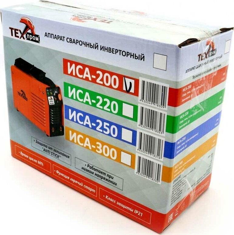 Напряжение сети питания, Вт 180 - 240 Частота тока, Гц 50 Количество плат 1 Свар. ток, А (на аппарате) 200 ПВ, % (время цикла) 60 Сетевой кабель, м 1,2 Электрод, Ø 0-3.0 IP - IP21 Ремень/ ручка - ремень Доп функции. Защита от залипания "ANTI STICK" Функция горячий старт.