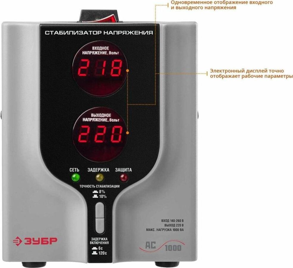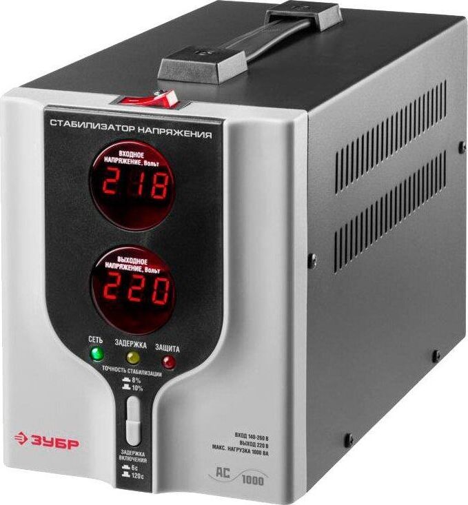 Артикул 59375-1 Мощность, кВА 1 Выходное напряжение, В 220 Max входное напряжение, В 260 Min входное напряжение, В 140 Погрешность, % 8 Количество фаз, шт 1 Индикация Цифровая, электронная Кпд, % 97 Задержка включения Количество гнезд, шт 1 Тип Напольный