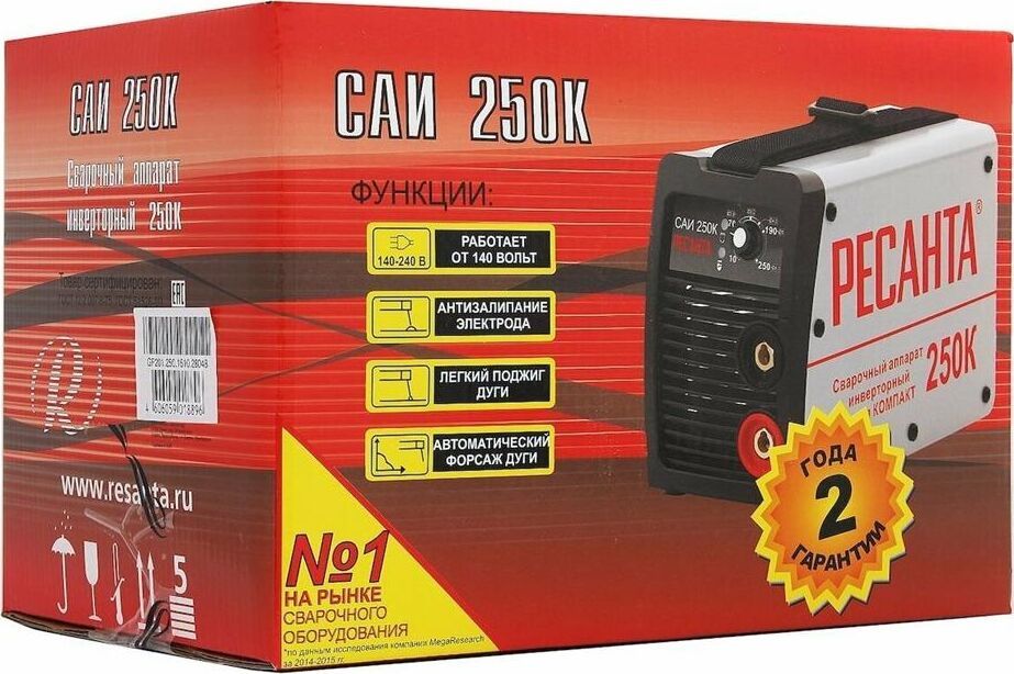 Комплектация: кабель с электрододержателем; кабель с клеммой заземления