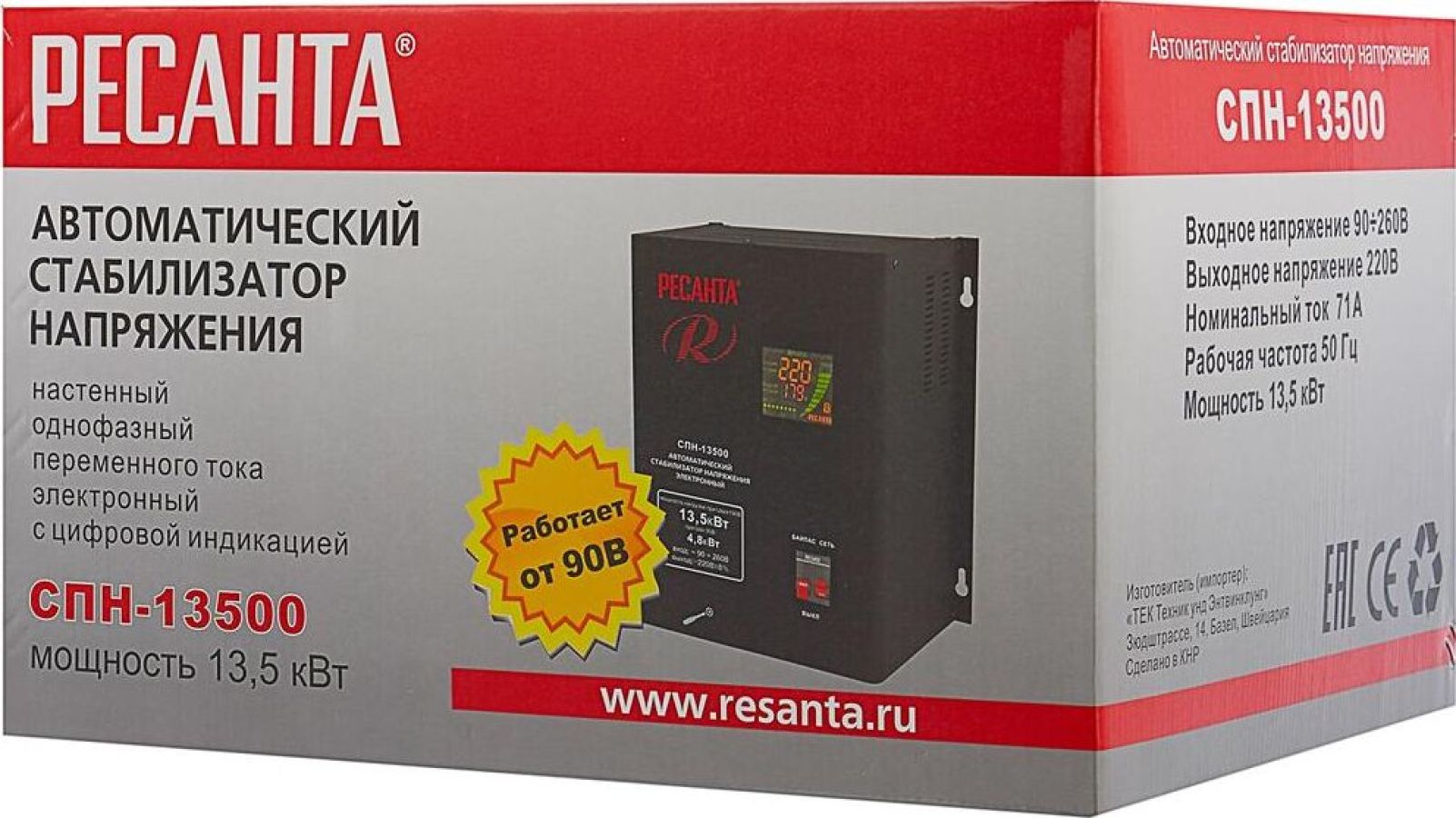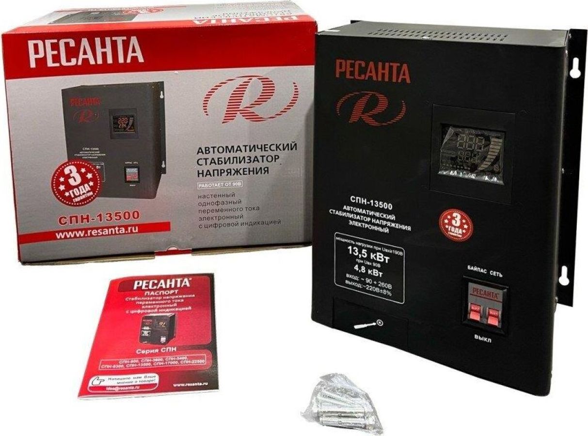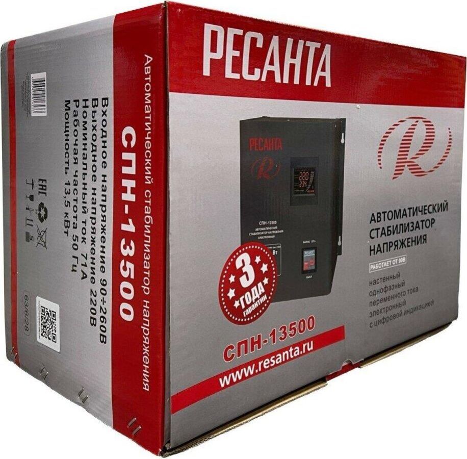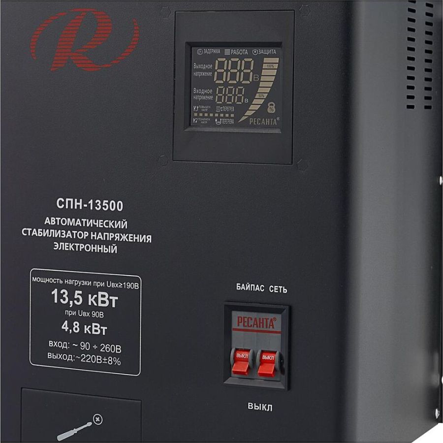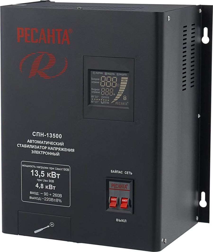 Номинальная мощность 13 500Вт, Тип двигателя Релейный (пониженного напряжения), производство Китай, Серия СПН, Тип напряжения Однофазное (220 В), Размещение Настенное, Время отклика 7мс, Охлаждение Естественное, Класс защиты IP20, Влажность воздуха 80%, КПД 97%, Точность стабилизации 8%, Выходное напряжение 202-238В, Рабочая температура 5-40°C, Частота 50Гц, Защита от короткого замыкания, от перегрева, от повышенного напряжения, от помех