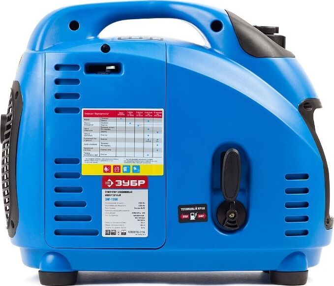Технические характеристики Зубр ЗИГ-1200 Вес, кг 18,7 Max мощность, кВт 1,2 Емкость топливного бака, л 3,6 Напряжение, В 220 Мощность номинальная при 220 В, кВт 1 Обмотка альтернатора двигателя медь Альтернатор синхронный Автозапуск (АВР) нет Стартер ручной стартер Тип кожуха закрытый Дисплей нет Эл. выходы 380/220/12, шт -/1/1 Мощность максимальная при 220 В, кВт 1.2 Объем масляного бака, л 0.6 Объем двигателя, см 72 Мощность двигателя 3.2 л.с. Расход топлива, л/ч 0.84 Колеса и ручки нет Степень защиты IP23 Тип электростанции туристические Контроль напряжения инверторный Индикатор уровня топлива да Тип двигателя 4-х тактный Аккумулятор в комплекте нет Вид топлива бензин Датчик масла да Выход 12V да Сила тока розеток 380/220/12, А -/5/4.5