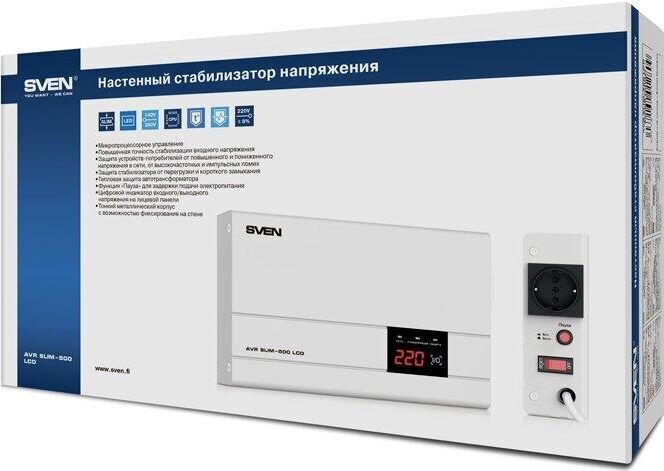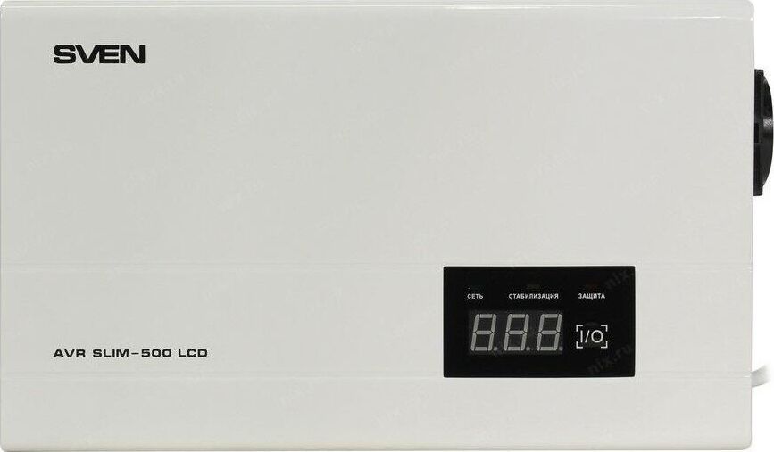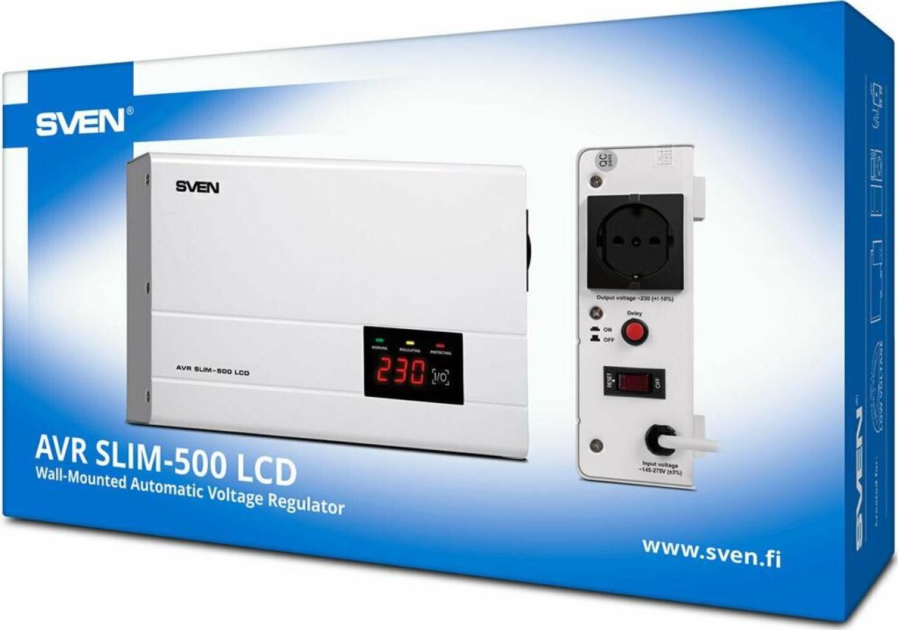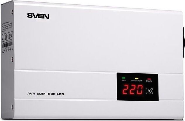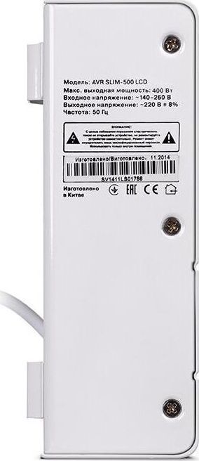 Релейный стабилизатор напряжения, мощность 500 В·А / 400 Вт, входное напряжение 140-260 В, выходное напряжение 198-242 В, активная мощность - 400 Вт, полная мощность -500 В·А, тип входного напряжения - однофазное (220В), точность стабилизации 10%, настенн