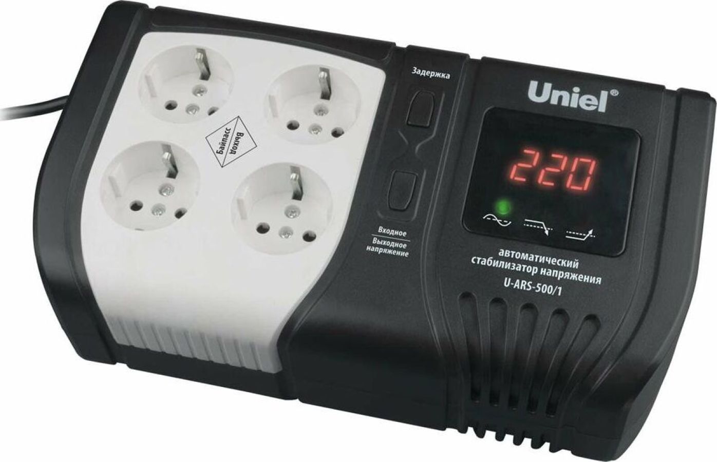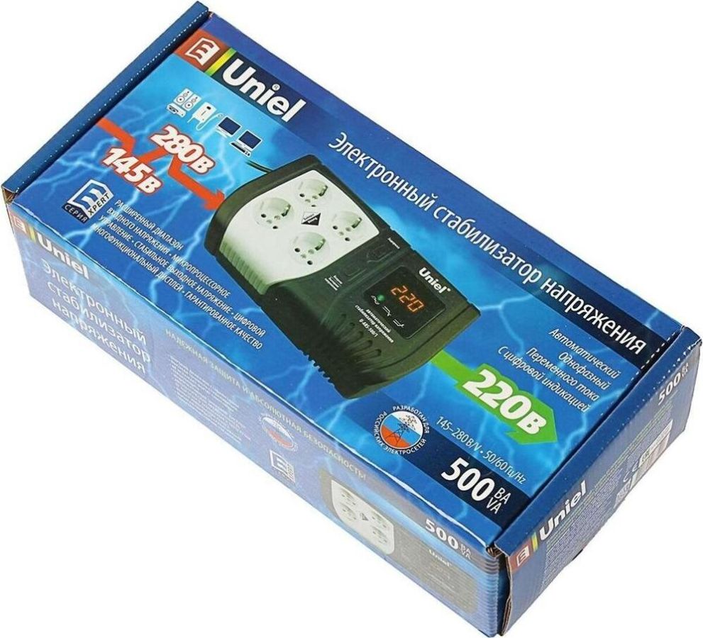 Время отклика на изменение входного напряжения, млс: Менее 20 мс, Искажение синусоиды: Нет, Максимальное напряжение отключения нагрузки, В: 293 ± 2 (вход), Защита от импульсных перенапряжений: Да, Входная частота, Гц: 50-60, Защита от перегрузки: Да, Защита от поражения электрическим током: I, Защита от пониженного напряжения: Да, Защита от короткого замыкания: Да, Минимальное напряжение отключения нагрузки, В: 130 ± 2 (вход), Защита от перегрева: Да, КПД, %: 97, Количество реле, шт.: 4, Время непрерывной работы, ч.: не ограничено, Максимальный ток, А: 2, Количество фаз, шт.: 1, Точность стабилизации, %: ± 10%, Выходное напряжение, В: 220, Защита от повышенного напряжения: Да