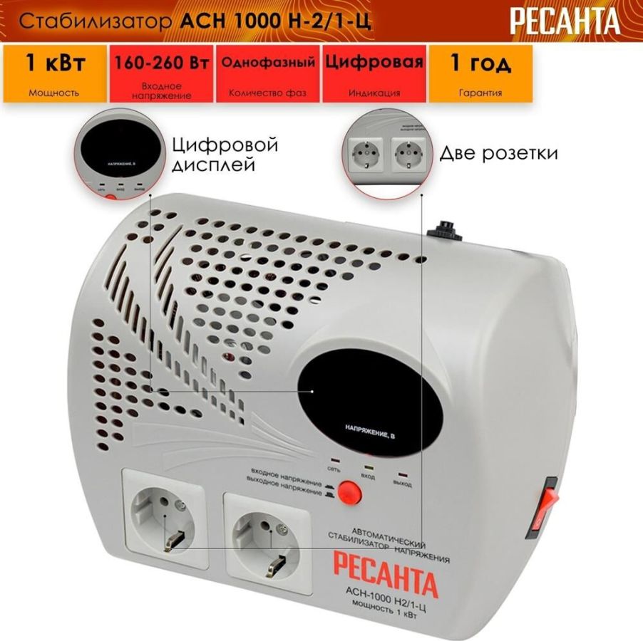 Номинальная мощность 1000Вт, Тип двигателя Релейный, производство Китай, Серия АСН, Тип напряжения Однофазное (220 В), Размещение Настенноее, Скорость стабилизации 35В/с, Охлаждение Естественное, Класс защиты IP20, Влажность воздуха 80%, КПД 97%, Точность стабилизации 8%, Выходное напряжение 202-238В, Рабочая температура 5-40°C, Частота 50Гц, Выходные розетки-2, Защита от короткого замыкания, от перегрева, от повышенного напряжения, от помех
