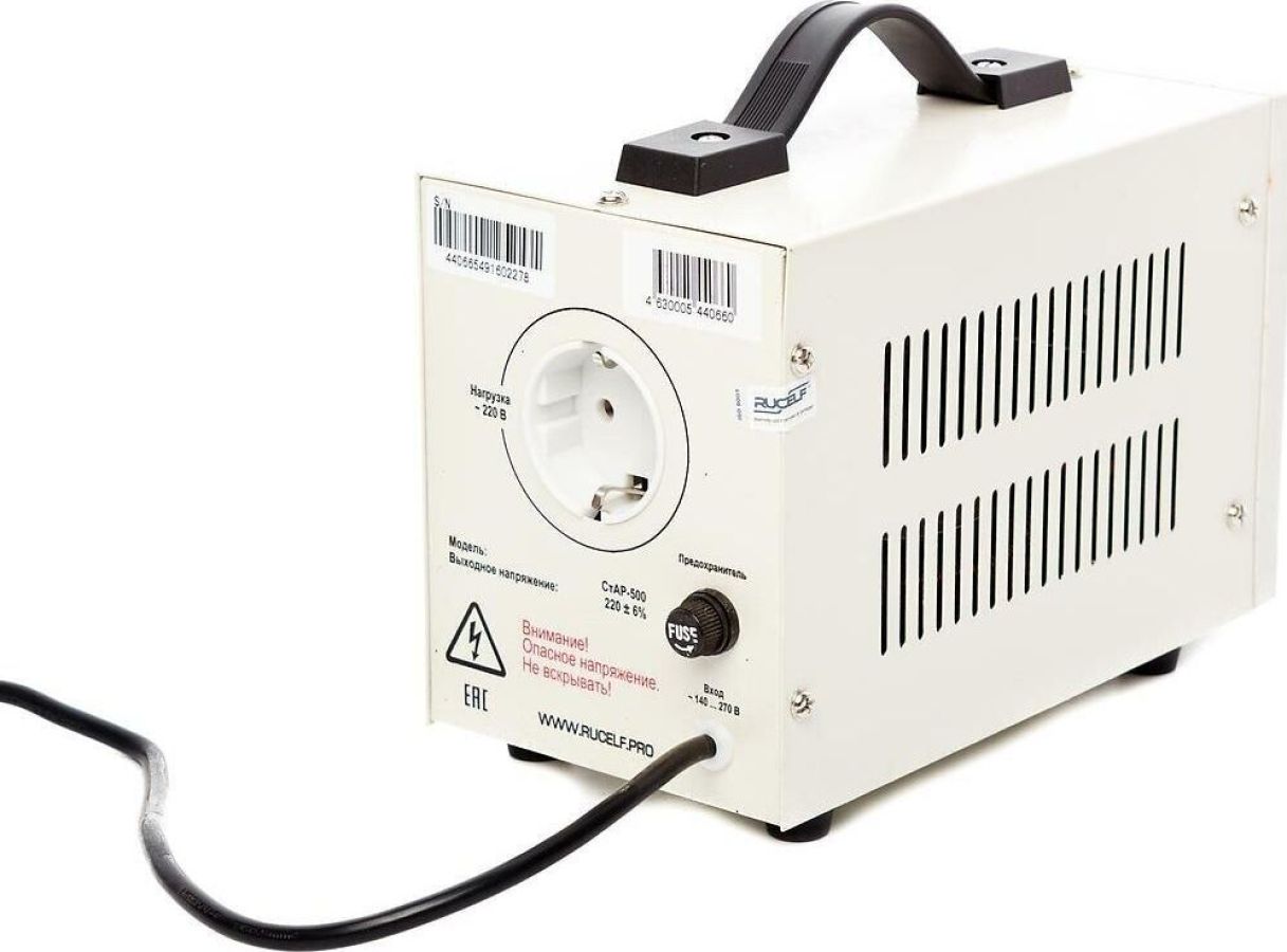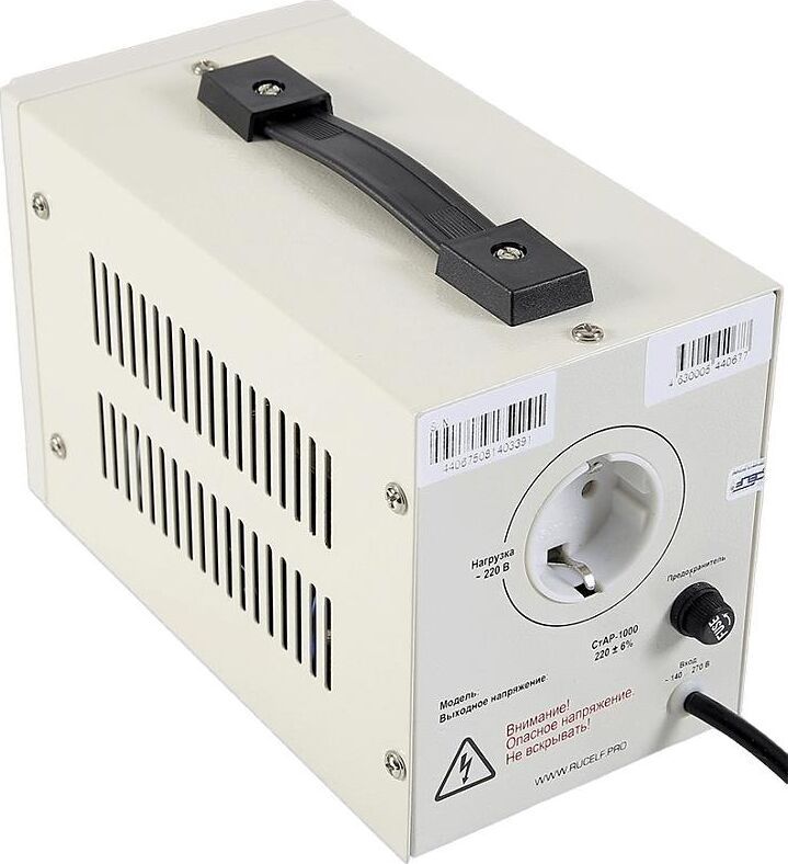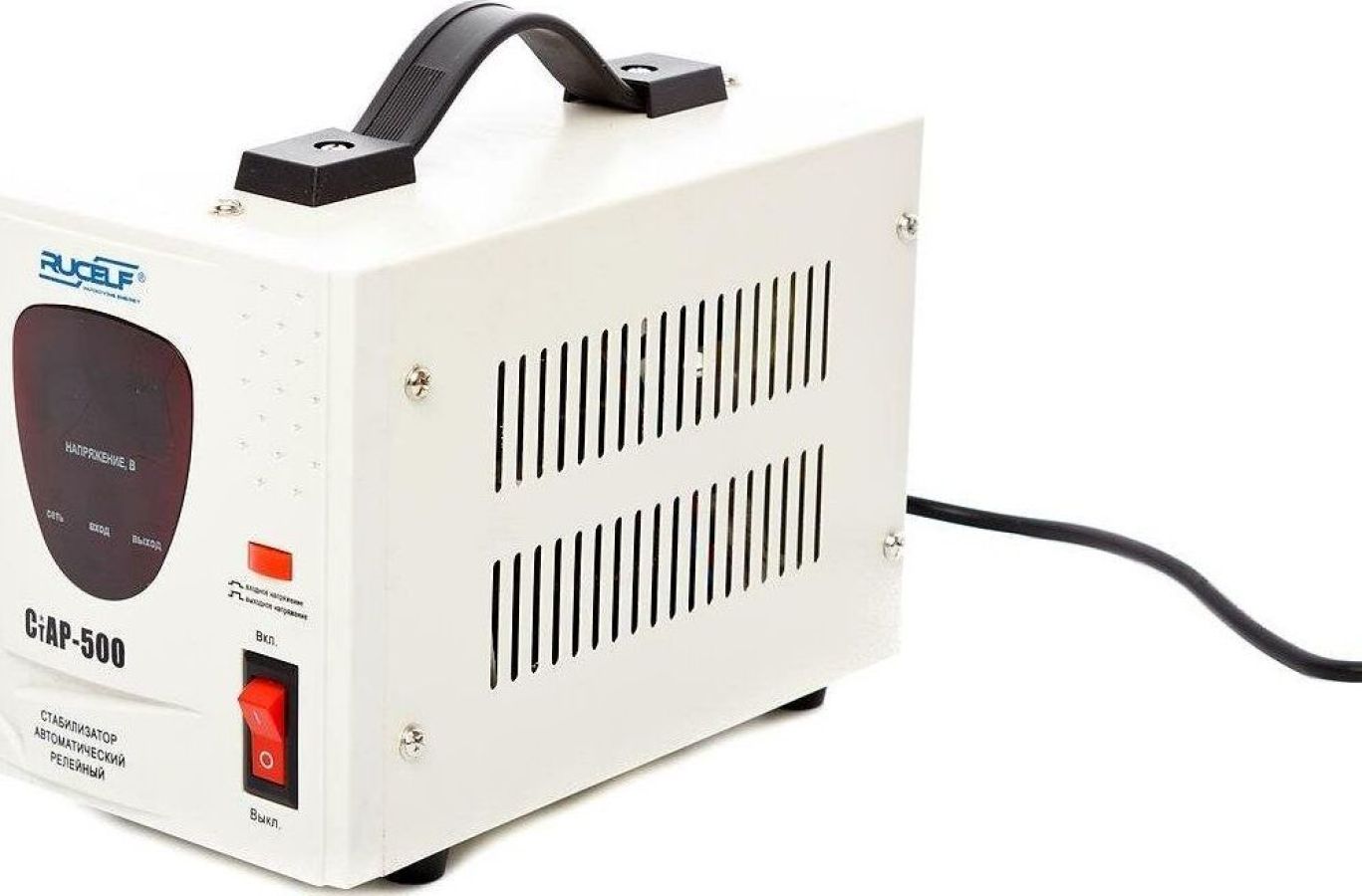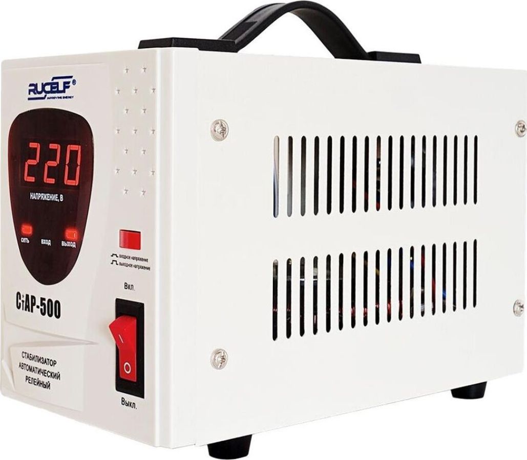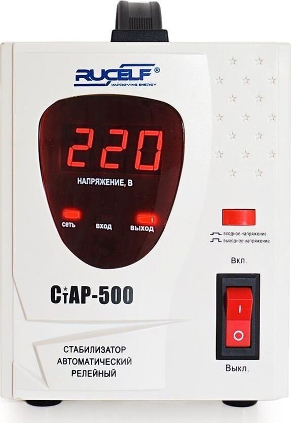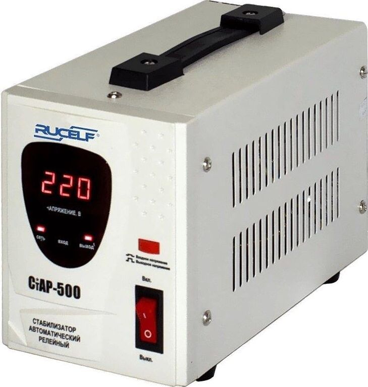 Тип стабилизации: Релейный. Диапазон стабилизации: 140-260 В. Рабочий диапазон: 140-265 В. Точность стабилизации: ±6%. Мощность: 500 ВА. Габаритные размеры: 265х120х170 мм. Вес: 2,3 кг.