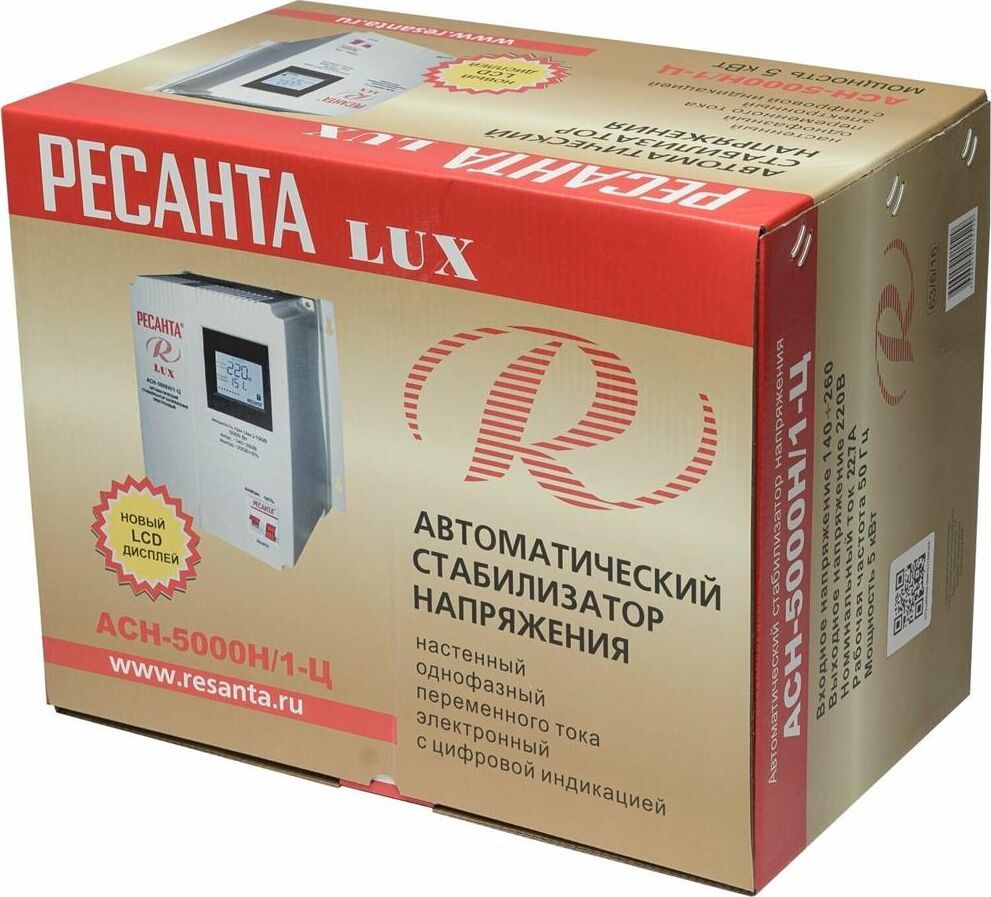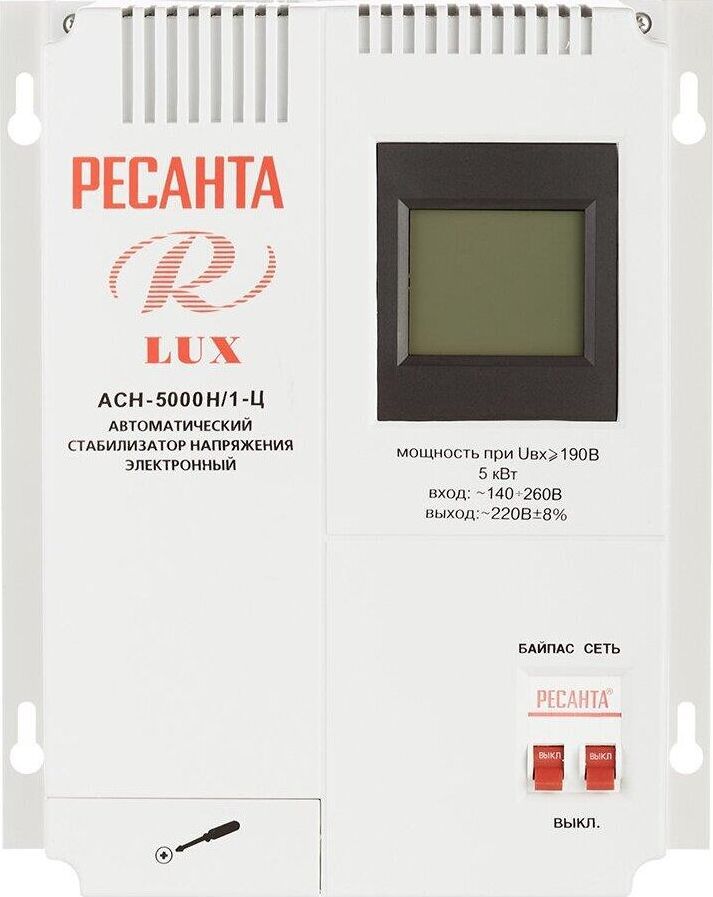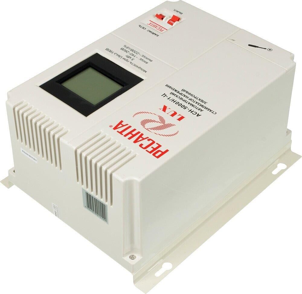 Номинальная мощность 5 000Вт, Тип двигателя Релейный, производство Китай, Серия АСН, Тип напряжения Однофазное (220 В), Размещение Настенноее, Скорость стабилизации 35В/с, Охлаждение Естественное, Класс защиты IP20, Влажность воздуха 80%, КПД 97%, Точность стабилизации 8%, Выходное напряжение 202-238В, Рабочая температура 5-40°C, Частота 50Гц, Защита от короткого замыкания, от перегрева, от повышенного напряжения, от помех