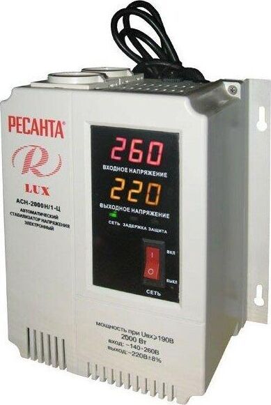 Номинальная мощность 2 000Вт, Тип двигателя Релейный, производство Китай, Серия АСН, Тип напряжения Однофазное (220 В), Размещение Настенноее, Скорость стабилизации 35В/с, Охлаждение Естественное, Класс защиты IP20, Влажность воздуха 80%, КПД 97%, Точность стабилизации 8%, Выходное напряжение 202-238В, Рабочая температура 5-40°C, Частота 50Гц, Выходные розетки-2, Защита от короткого замыкания, от перегрева, от повышенного напряжения, от помех