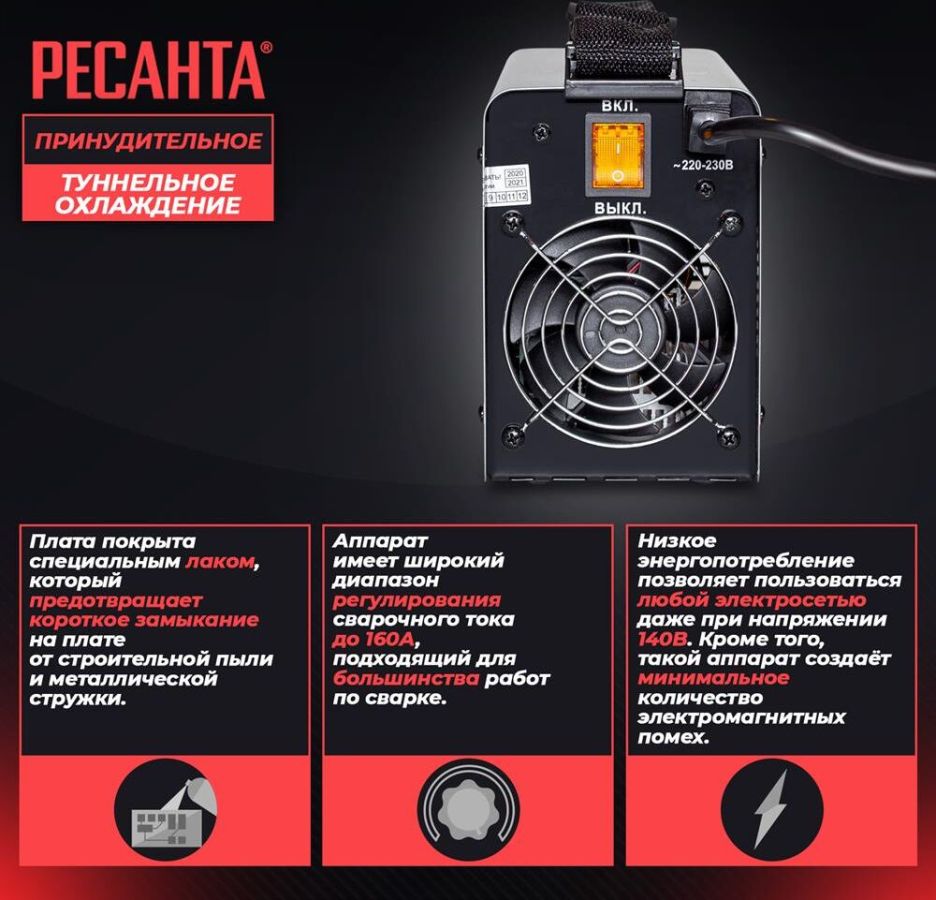 Напряжение питающей сети 140-260, Продолжительность нагружения, (40%) 70% 160A, Потребляемый ток 22, Класс защиты IP21, Серия САИ, Тип Инверторный, Тип сварки дуговая (электродом, MMA), Номинальная мощность 4800Вт, Напряжение холостого хода 85В, Напряжение дуги 26,4-26,4 В, Диапазон регулирования сварочного тока 10-160А, Максимальный диаметр электрода 4 мм, Наличие сетевой вилки