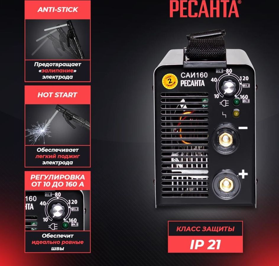 Комплектация: кабель с электрододержателем; кабель с клеммой заземления