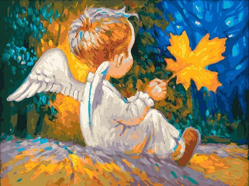 Холст на подрамнике с нанесенным рисунком, контрольный лист с нанесенной схемой, набор акриловых красок, кисти – 4 шт., крепление для готовой картины, пакет с zip-застежкой 23 х 17,5 см