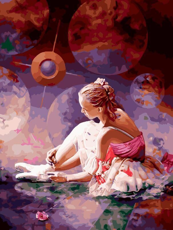 Холст на подрамнике с нанесенным рисунком, контрольный лист с нанесенной схемой, набор акриловых красок, кисти – 4 шт., крепление для готовой картины, пакет с zip-застежкой 23 х 17,5 см