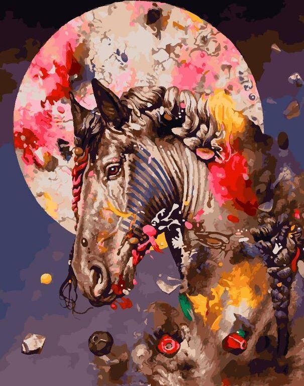 Холст на подрамнике с нанесенным рисунком, контрольный лист с нанесенной схемой, набор акриловых красок, кисти – 4 шт., крепление для готовой картины, пакет с zip-застежкой 23 х 17,5 см
