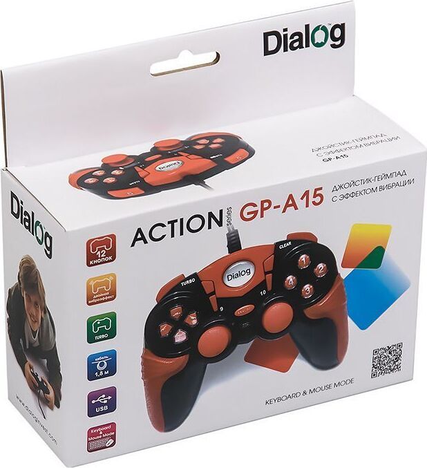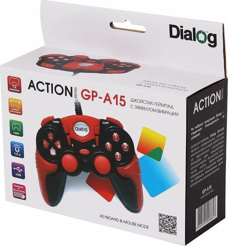 Геймпад с эффектом вибрации, количество кнопок управления: 12, интерфейс: USB 1.1 или 2.0, два вибромотора, поддерживаемые ОС: Microsoft Windows XP SP2/SP3, Vista SP2, Windows 7 SP1, Windows 8, Windows 8.1, Windows 10; Microsoft DirectX 9.0c или новее, длина кабеля - 1,8 м.