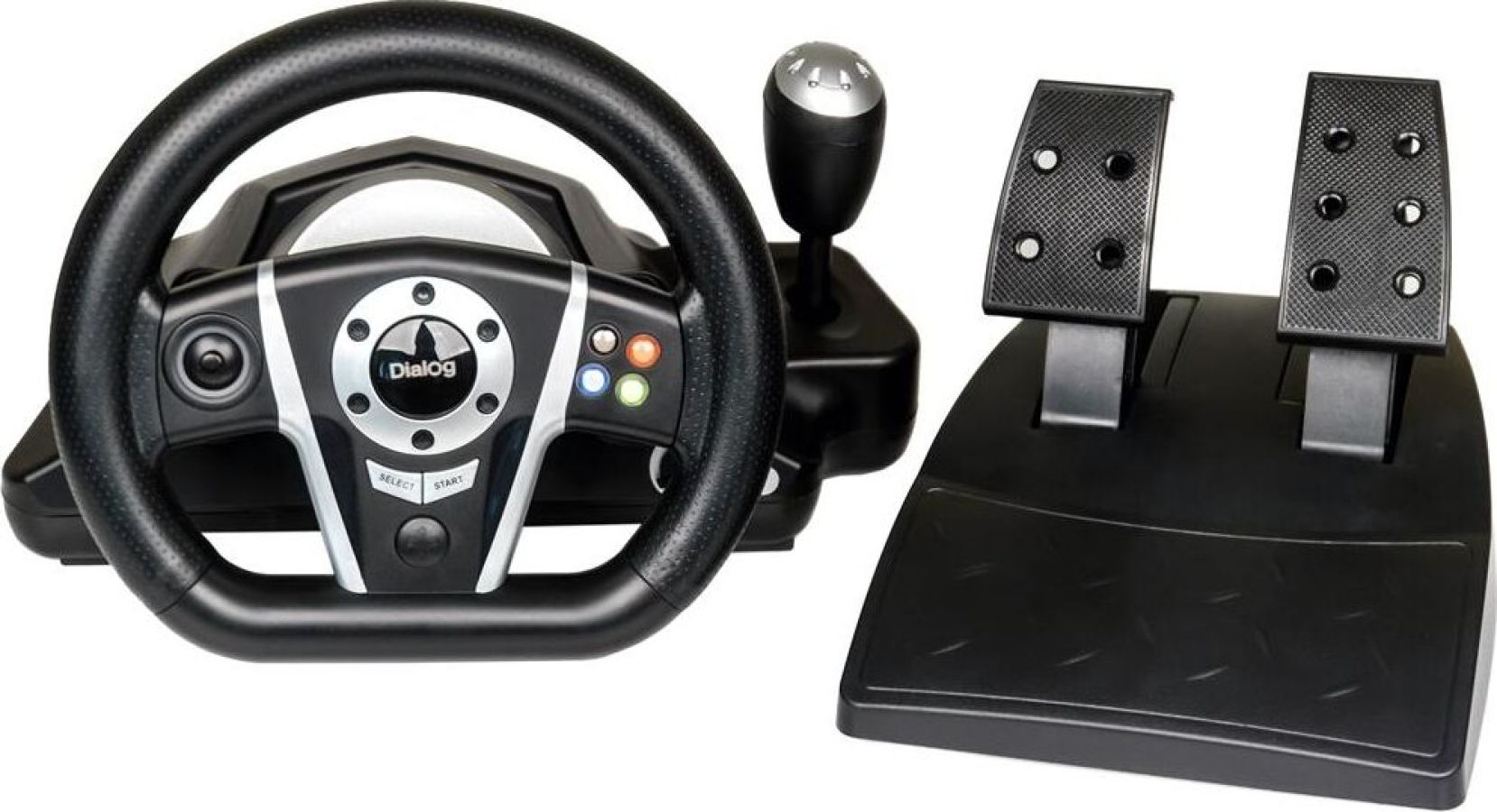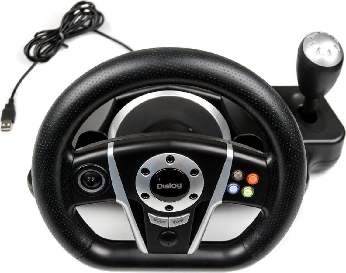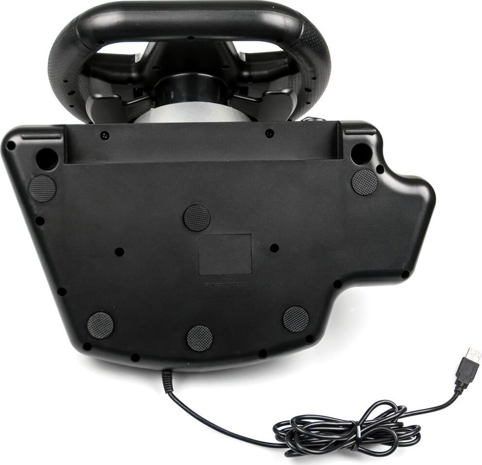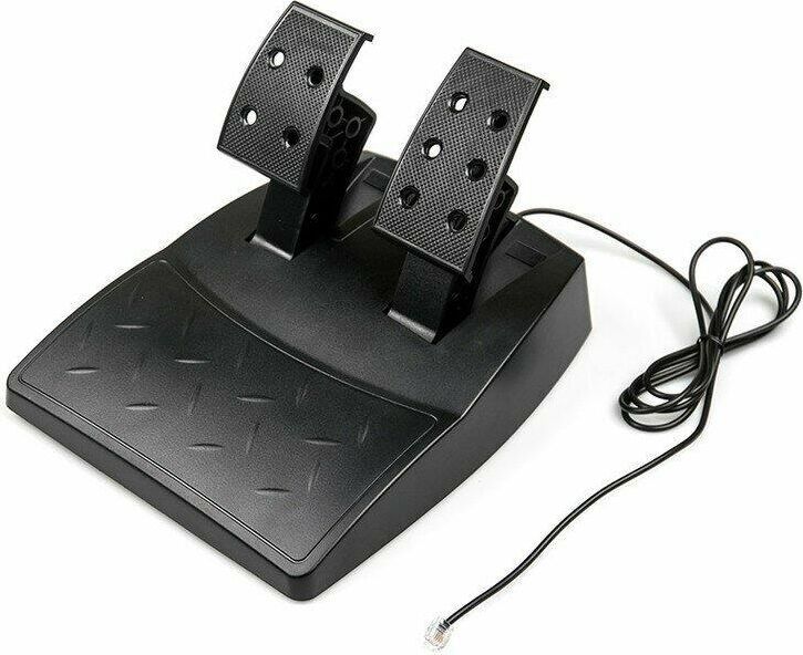 Джойстик-руль, с эффектом вибрации, интерфейс USB, двухпозиционный рычаг переключения скоростей. На рулевом колесе: 2 подрулевых лепестка для переключения скоростей, 8-позиционная навигационная крестовина, 4-кнопочная крестовина управления, крупная кнопка в центре, 2 кнопки Select и Start и четырехкнопочная крестовина в нижней части рулевого колеса.