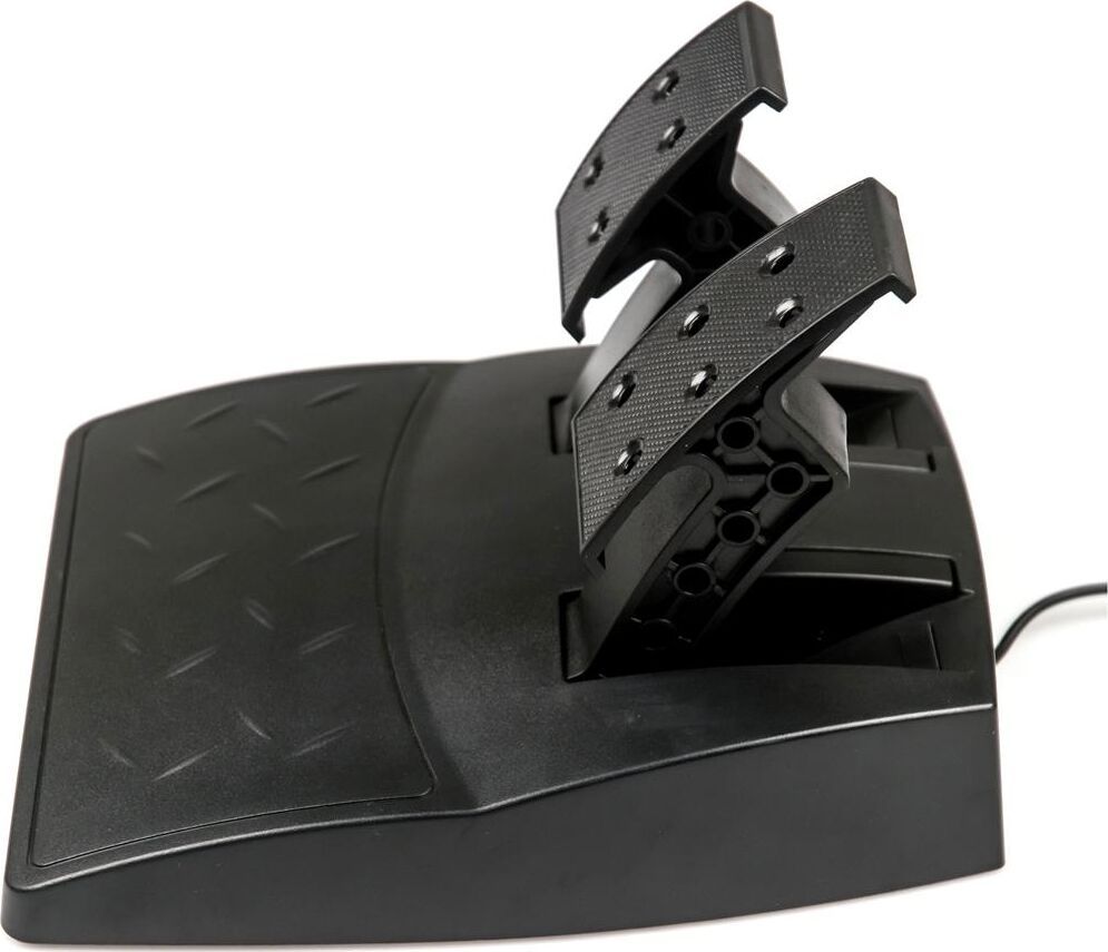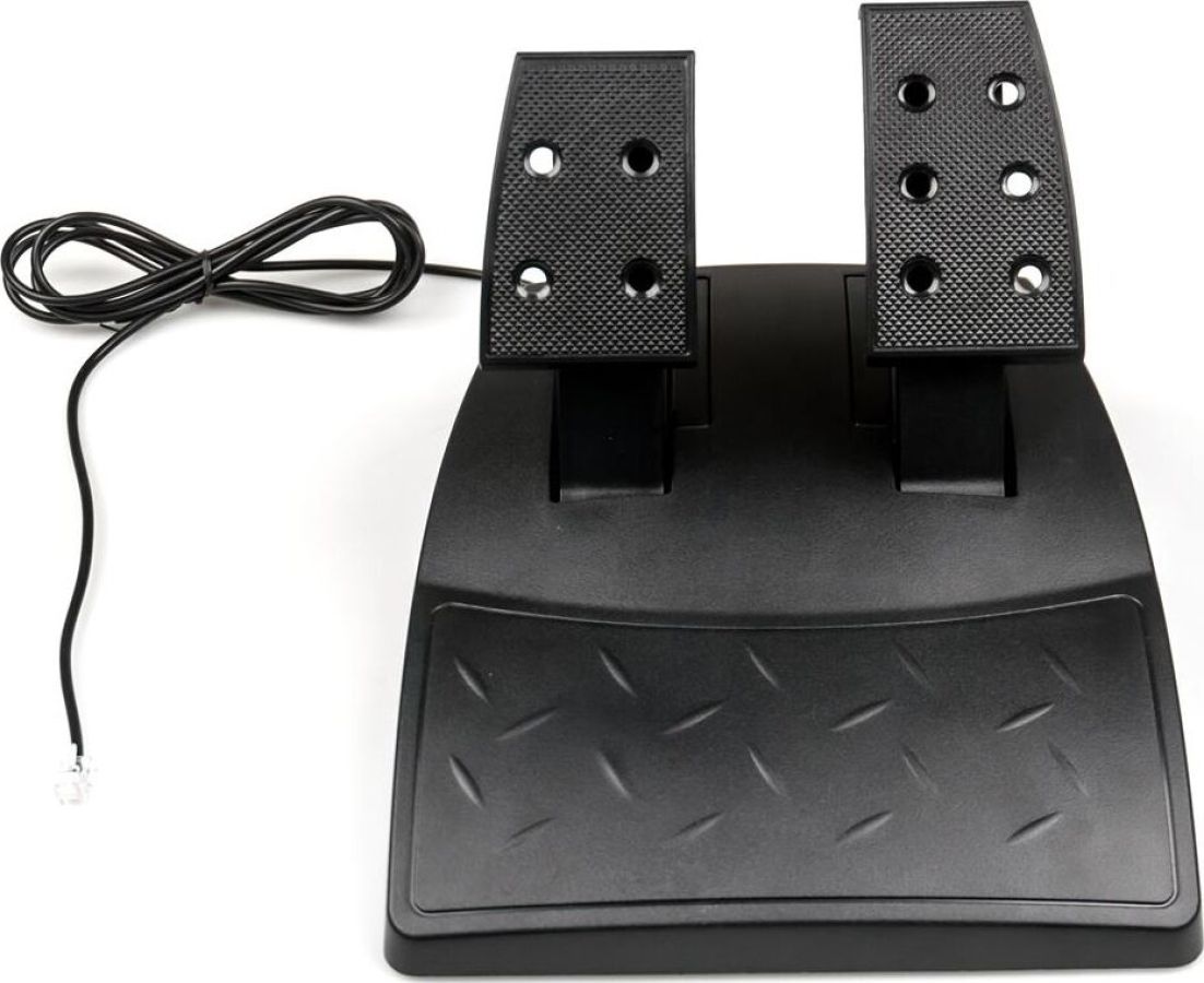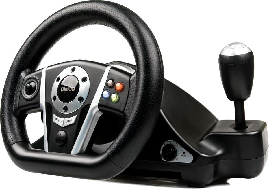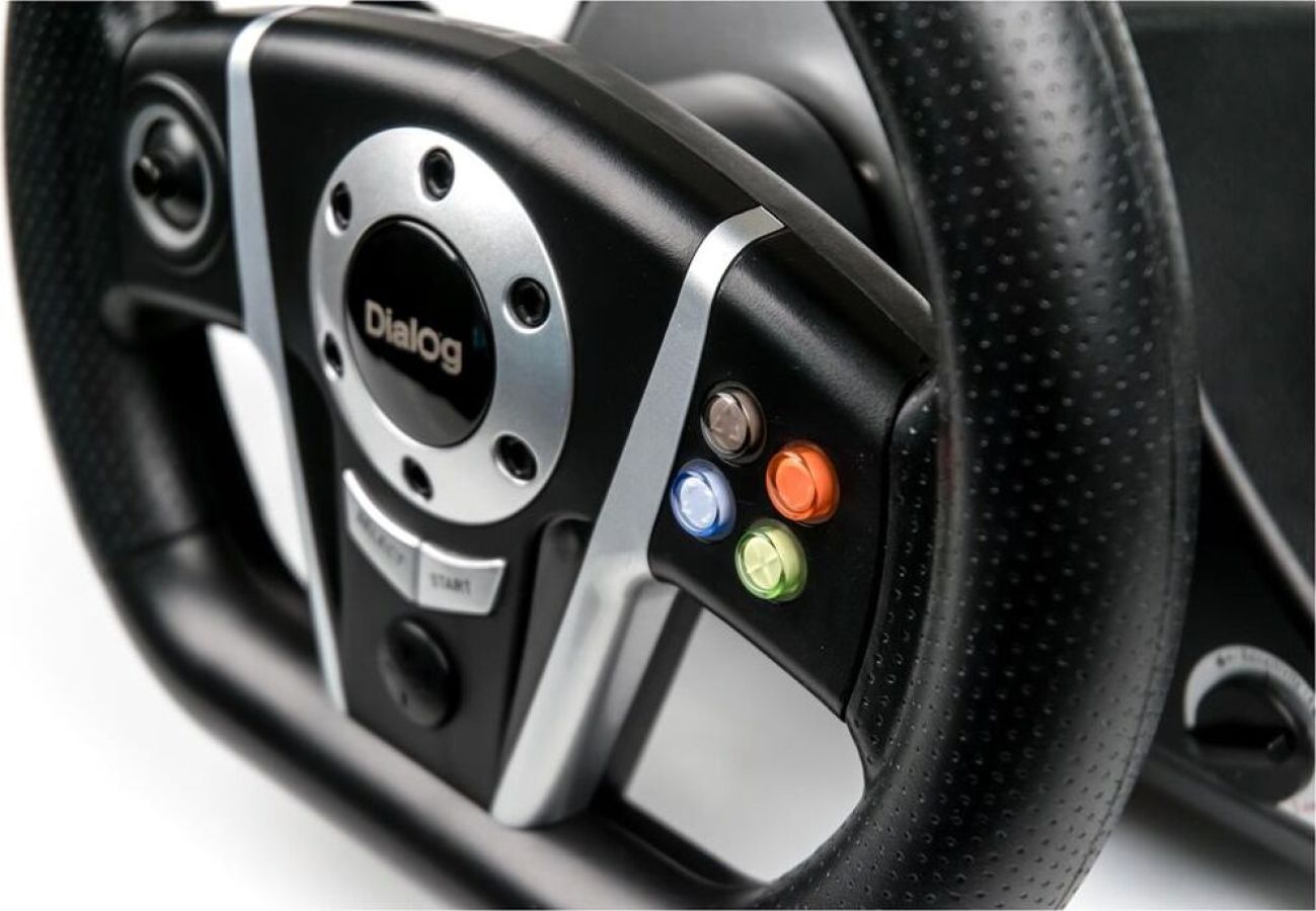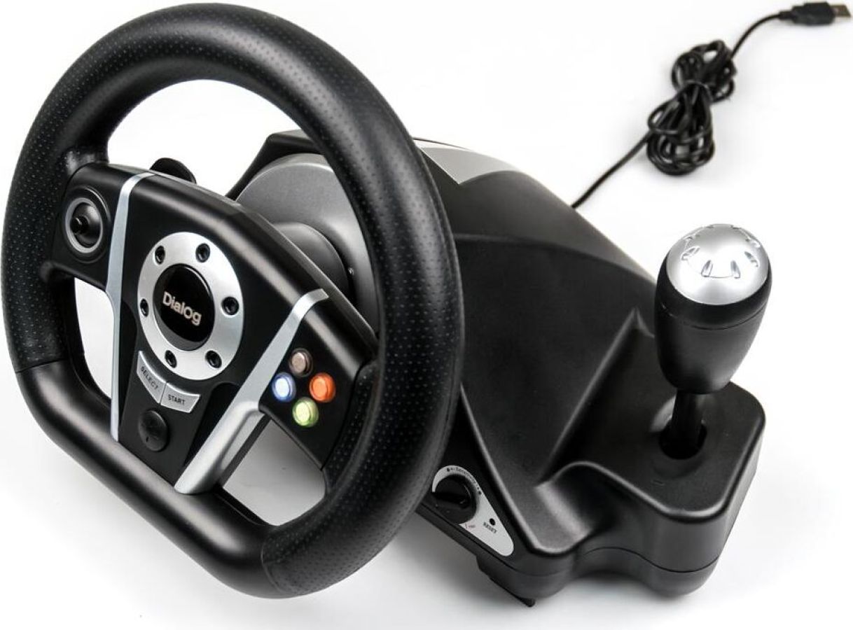Джойстик-руль, с эффектом вибрации, интерфейс USB, двухпозиционный рычаг переключения скоростей. На рулевом колесе: 2 подрулевых лепестка для переключения скоростей, 8-позиционная навигационная крестовина, 4-кнопочная крестовина управления, крупная кнопка в центре, 2 кнопки Select и Start и четырехкнопочная крестовина в нижней части рулевого колеса.