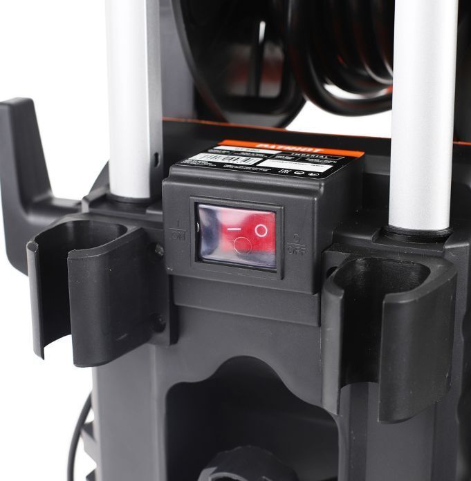 Мощность, Вт: 2050 Вт , Защита: предохранительный клапан, защита двигателя от перегрева, автоматическое отключение , Количество аккумуляторов в комплекте: без аккумулятора , Длина шланга высокого давления: 6 м , Габариты (ШхГхВ): 33.5x63x30 см