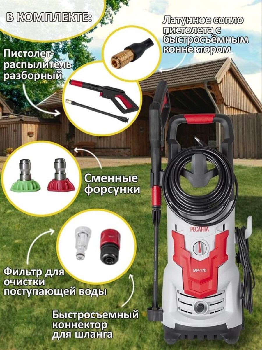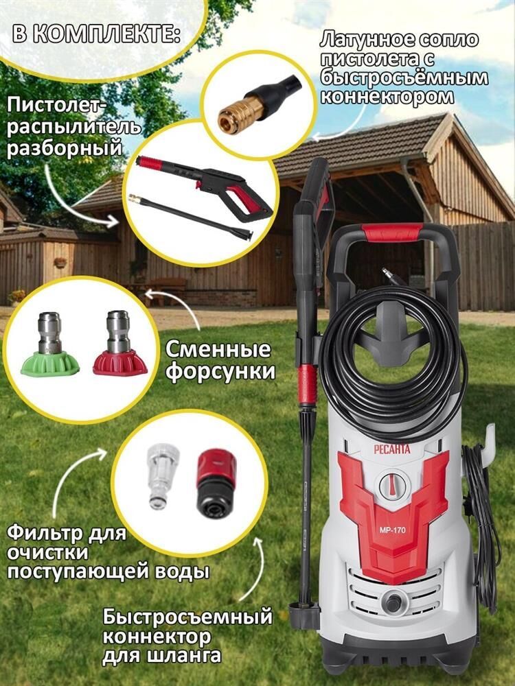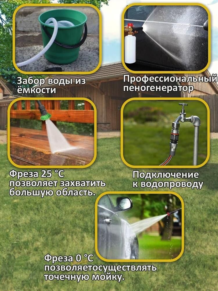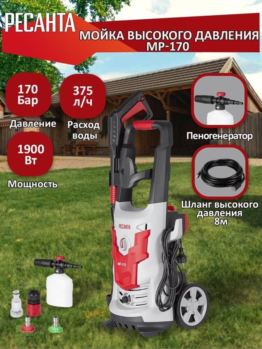 Мощность, Вт: 1900 Вт , Количество аккумуляторов в комплекте: без аккумулятора , Длина шланга высокого давления: 8 м , Габариты (ШхГхВ): 32.1x59.5x36.6 см