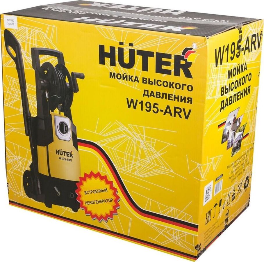 Мощность: 2,5 кВт. Напряжение: 220 В. Частота: 50 Гц. Тип двигателя: электрический, щеточный. Максимальное давление: 195 бар. Рабочее давление: 130 бар. Расход воды: 420 л/ч. Материал помпы: алюминий. Длина кабеля: 5 м. Длина шланга: 5 м. Барабан для шланга: есть. Тип пеногенератора: бытовой. Максимальное давление поступающей воды: 4 бар. Максимальная температура воды: 50 °С. Забор воды из емкости: есть. Колеса: есть. Габаритные размеры, ДхШхВ: 500x300x540 мм.