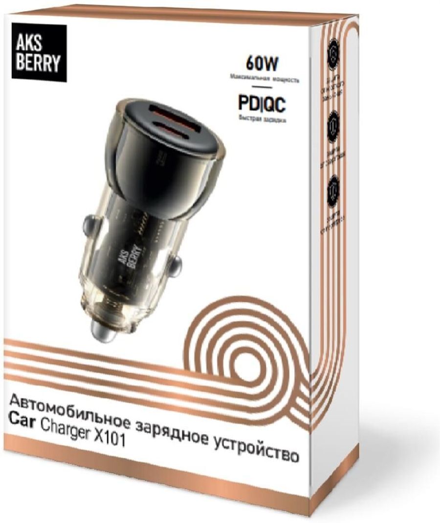 Автомобильная зарядка Aksberry X101 TYPE-C(30w)+USB-A(30W) (черный)