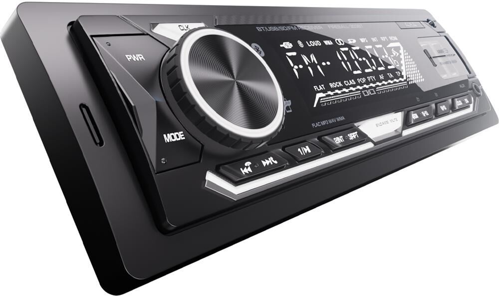 Автомобильный USB/SD ресивер Максимальная выходная мощность: 51Вт Номинальная выходная мощность (при КНИ менее 1%): 16Вт Bluetooth (A2DP) 2xUSB/SD для воспроизведения Mp3, FLAC Зарядка USB 1.2A Белая подсветка кнопок Вход AUX (3,5 мм джек) Линейный выход RCA (2 пары) Цифровой радио-тюнер Память на 18 FM радиостанций Авто поиск, авто запоминание станций ID3 тэги (английский язык) Несъемная панель Жидкокристаллический (VA) дисплей ISO разъем (ISO коннектор в комплекте)