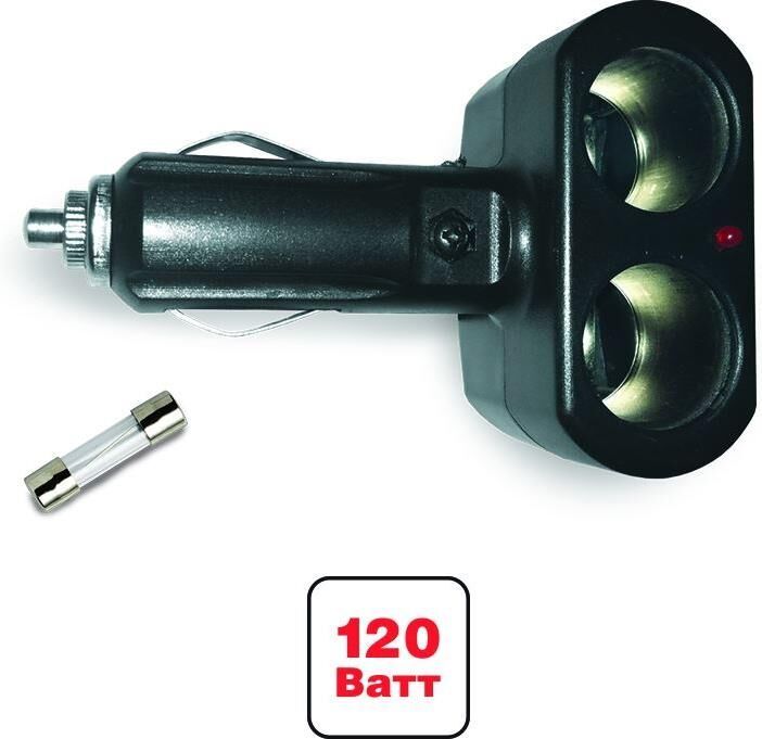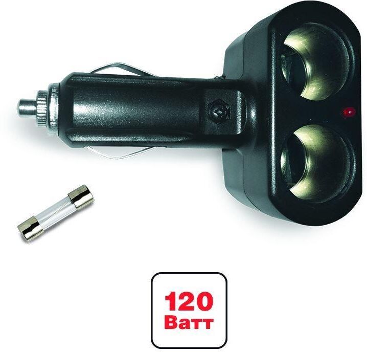 Компактный разветвитель позволяет подключать 2 устройства одновременно в разъем прикуривателя. Крепкое надежное устройство в корпусе из огнестойкого пластика. Защита от короткого замыкания и перепадов напряжения. Работа в сетях с номинальным напряжением 12В и 24В. Универсален для любых автомобилей. Характеристики •Питание: 12/24 В •Мощность: 120 Вт •Максимальный выходной ток: 10 А •Защита от короткого замыкания •Количество гнезд: 2 •Светодиодный индикатор сети •Плавкий предохранитель в корпусе штекера Материал: пластик Комплектация •Разветвитель •Предохранитель
