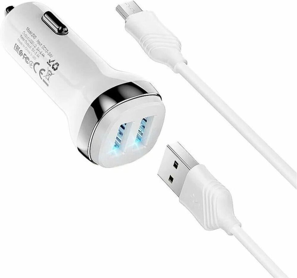 Автомобильное зарядное устройство HOCO Z40 оснащена многоуровневой защитой, что не позволит вашему устройству навредить. Благодаря двум портам USB вы сможете заряжать сразу два мобильных устройства. Качественный материал даст вам длительный срок службы.