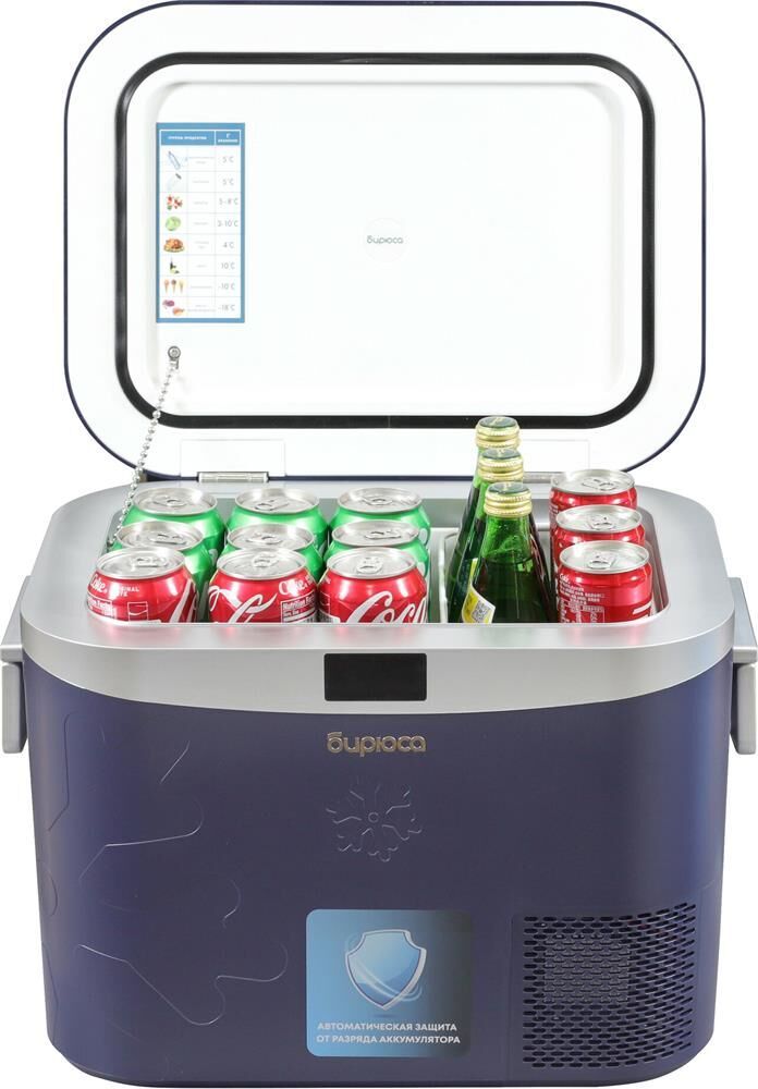 Мобильный холодильник компрессорный; Цвет: Темно-синий; Сенсорный LED дисплей; Температура в режиме морозильника: от -18 до 0 °C; Температура в режиме холодильника: от 0 до +20 °C; Работа от сети/прикуривателя автомобиля/аккумулятора; Автоматическая защита разряда аккумулятора машины; Крышка на магните; Габариты 33,5х46,5х32см; Объем: 18л