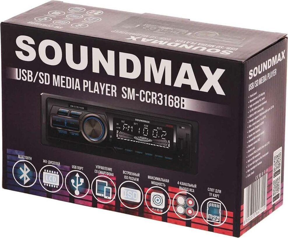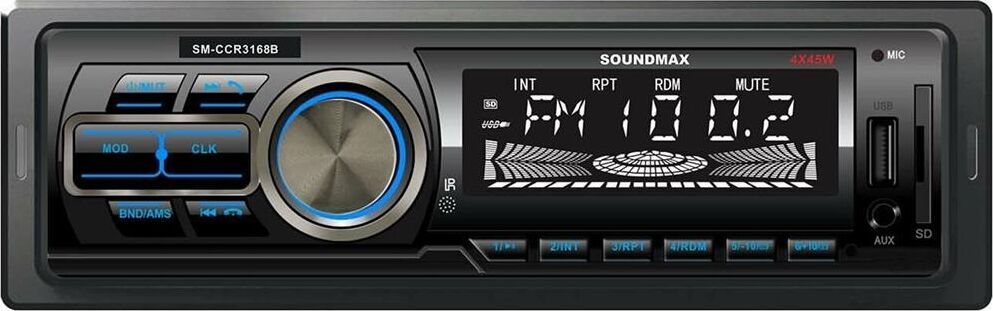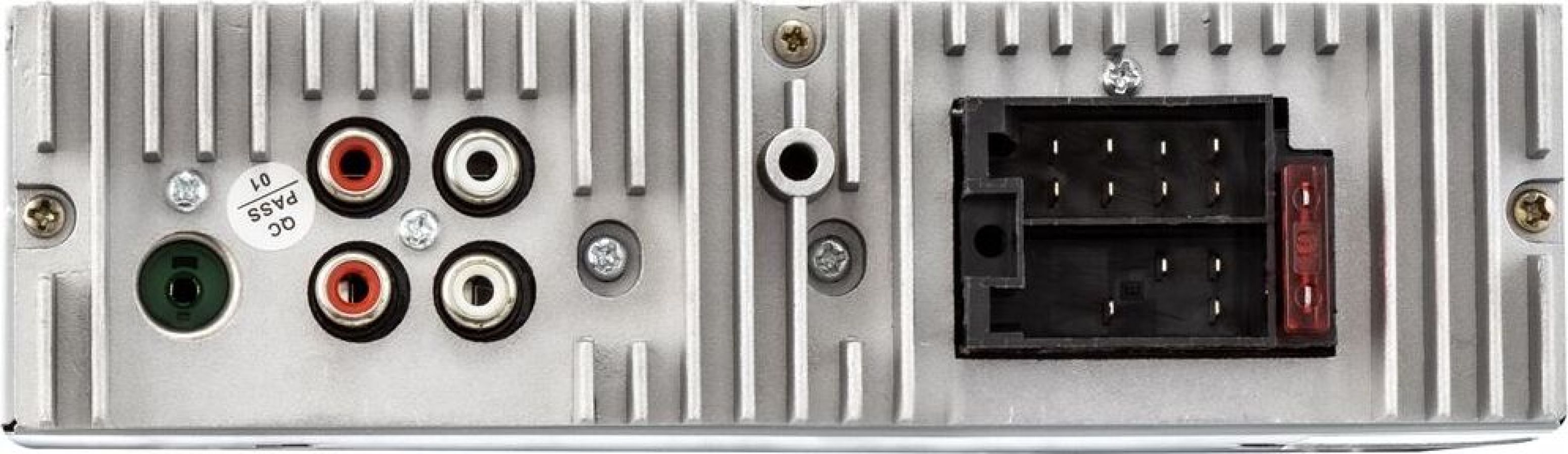 Фиксированная панель Монохромный ЖК-дисплей/ID3-теги Высокочувствительный цифровой тюнер Память на 18 FM станций Поддержка носителей USB/SD до 32 ГБ Максимальная выходная мощность: 4 х 50 Вт Bluetooth (поддержка A2DP) Функция Hands-free Управление через мобильное приложение для Android и IOS Встроенный микрофон 2-канальный выход RCA (2 В) Разъем AUX (3,5 мм) на передней панели RGB подсветка кнопок