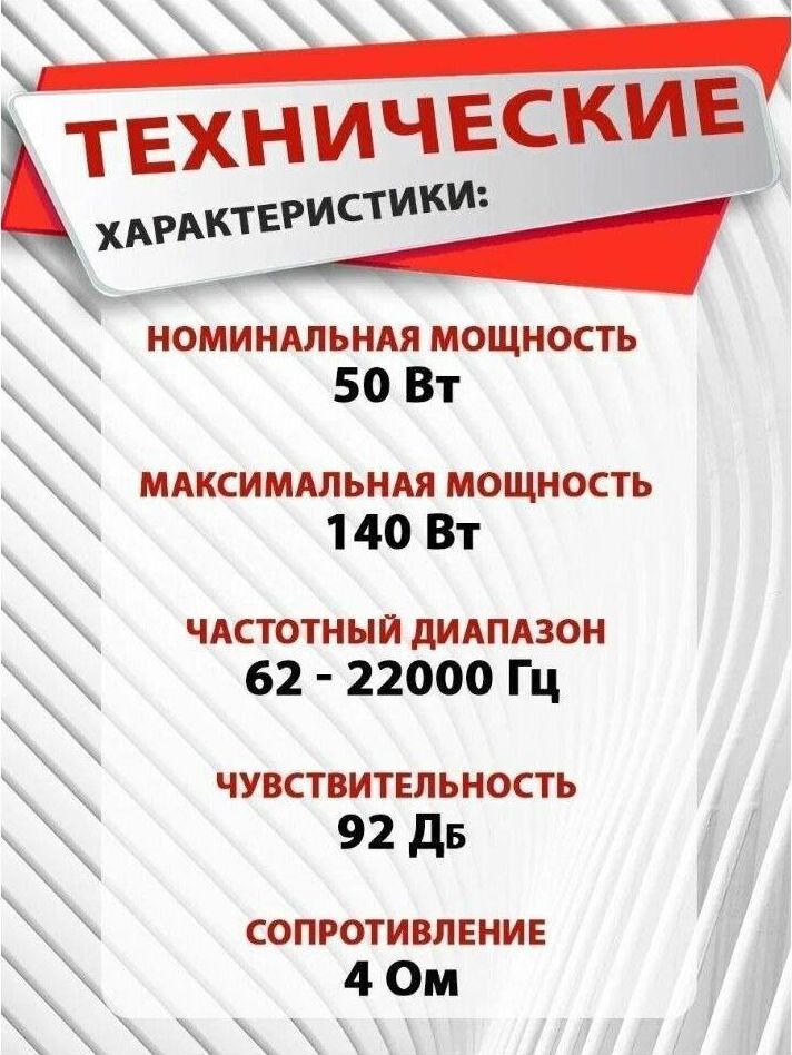 Тип Коаксиальная акустика Размер 6,5 дюйма (16,5 см) Диапазон частот 62 - 22000 Гц Максимальная мощность 140 Вт Сопротивление, Ом 4 Чувствительность, дБ 92 УСТАНОВОЧНЫЕ РАЗМЕРЫ Установочная глубина, мм 62 Диаметр монтажного отверстия, мм 145 универсальная коаксиальная акустика подходящая практически в любой автомобиль, идеально выполняет роль замены штатной акустики. Нч-диффузор инжекционного литья с гальваническим покрытием “Electroplating” с износостойким бутилкаучуковым подвесом. 3-х полосный твитер с расширенным диапазоном воспроизведения высоких частот.