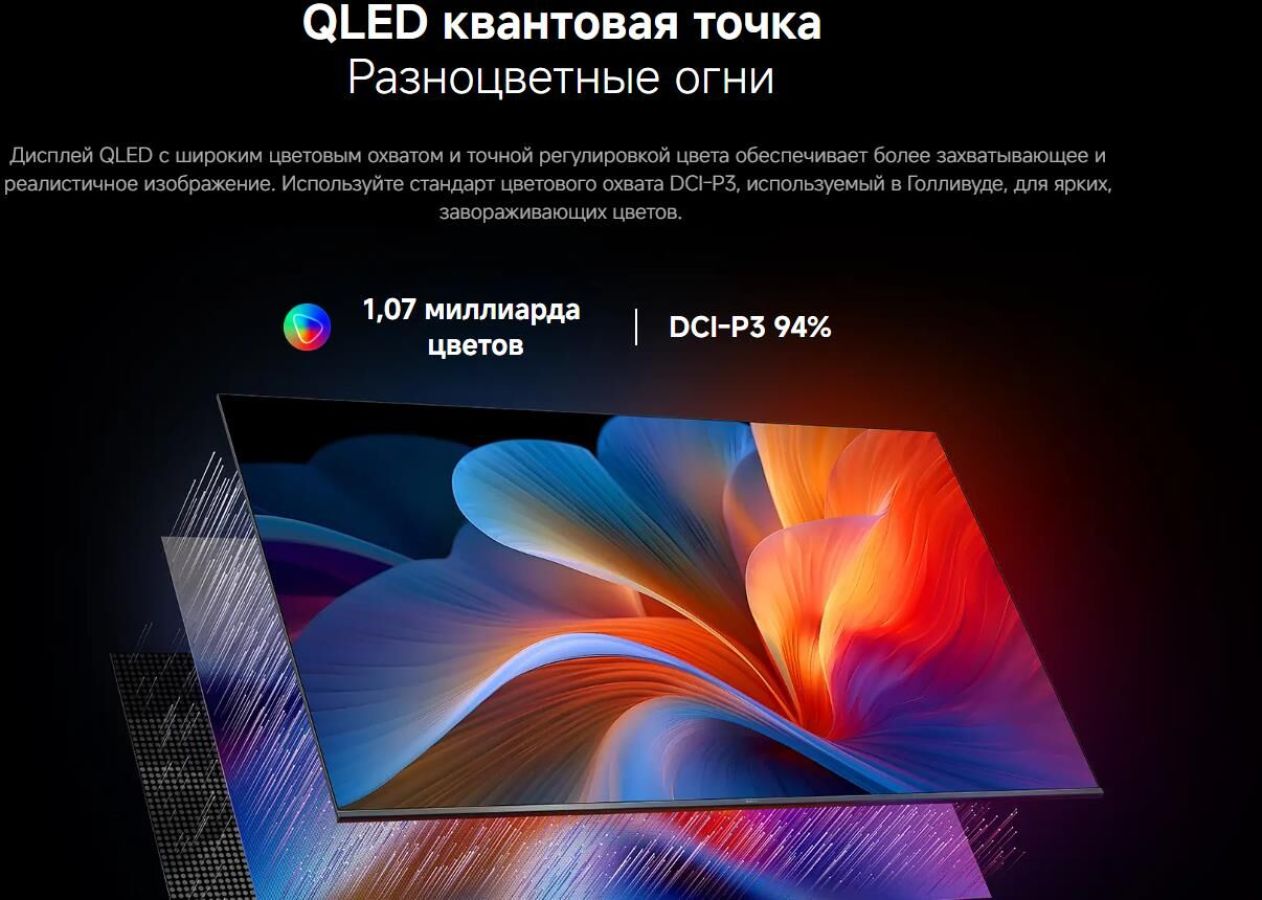 • Разрешение: 3840 x 2160 • Refresh rate: 60Hz • Глубина цвета: 1.07 миллиарда • Цветовой охват: QLED DCI-P3: 92%(мин.)/94% (обыч.) • Углы обзора: 178°(H)/178°(V) • HDR10+/MEMC/Режим Filmmaker Аудио • Два динамика по 10 W каждый • Dolby Audio, DTS-X, DTS Virtual:X Процессор • ЦПУ: Quad A55 • ГПУ: Mali G31 MC1 • ОЗУ: 2 Гб • Хранилище: 8 Гб Система • Android TV • Работает с Google Cast и Miracast • Встроенный Google Assistant built-in • Предустановленный YouTube Подключение • Wi-Fi 2.4GHz/5GHz • Bluetooth 5.0 • Система вещания: DVB-T2/C,DVB-S2 • Порты: - HDMI x 3 - USB 2.0 x 1 - Ethernet (LAN) x 1 - Композитный вход (AV) х1 - Оптический х1 Дизайн и размеры • Премиальный безрамочный дизайн • Настенное крепление: 100 x 200мм