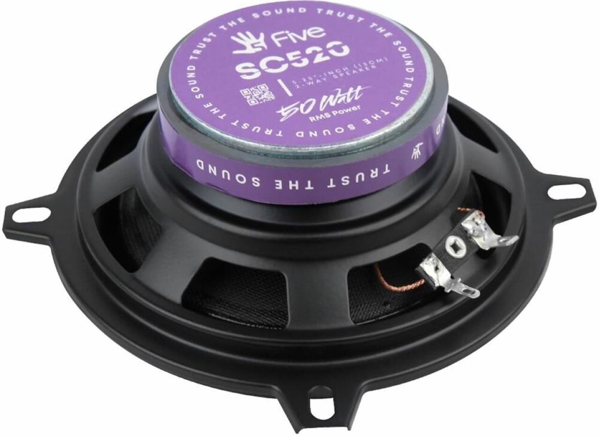 5,25-дюймовый (13,3 см) 2-полосный коаксиальный динамик Бумажный конус с краем из бутилкаучука, штампованная стальная корзина, 30-миллиметровый твитер из майлара, Частотная характеристика: 75 Гц ~ 20 кГц, Чувствительность: 88 дБ / Вт / м Магнит: 7070 x 10 мм (5,4 унции) Звуковая катушка: 25 мм KSV, Номинальное сопротивление: 4 Ом Номинальная мощность (среднеквадратичная): 50 Вт Пиковая мощность (PMPO): 150 Вт Монтажная глубина: 44 мм (1,73 дюйма) Диаметр установочного отверстия: 117 мм (4,6 дюйма)
