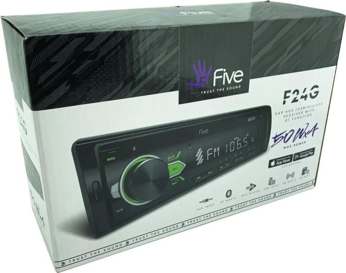Поддерживаемые форматы MP3, WMA, WAV, FLAC Карта памяти до 32 Гб Бренд Five Тип товара автомагнитола Модель Цвет подсветки красный Максимальная выходная мощность 4x50 Вт Панель управления несъемная Напряжение 12 В Рабочая частота FM 87,5-108 МГц Чувствительность 15 дБ
