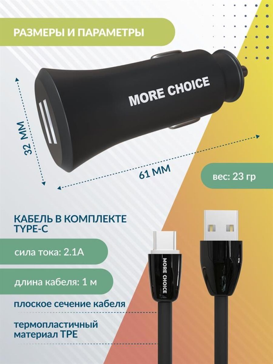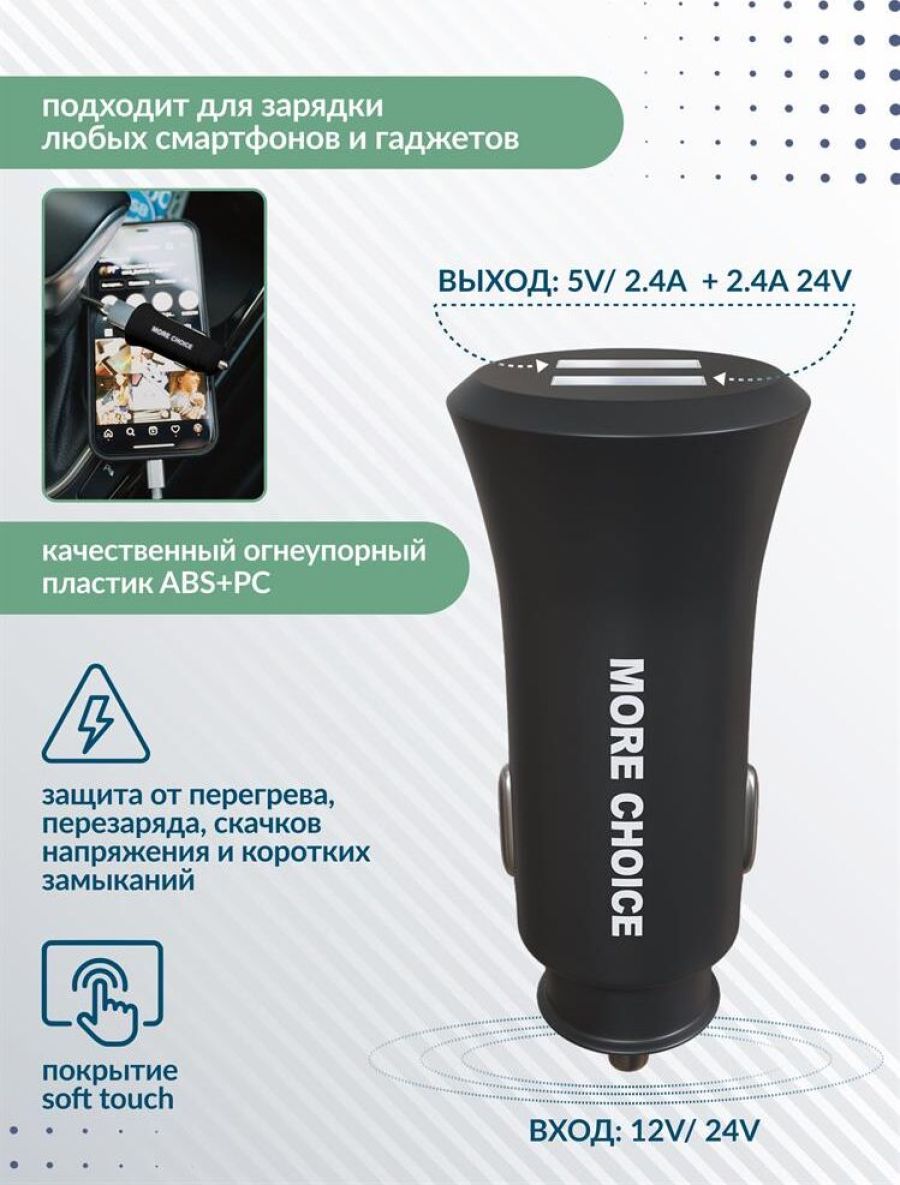 MORE CHOICE AC23a АЗУ 2USB 2.4A для Type-C Black