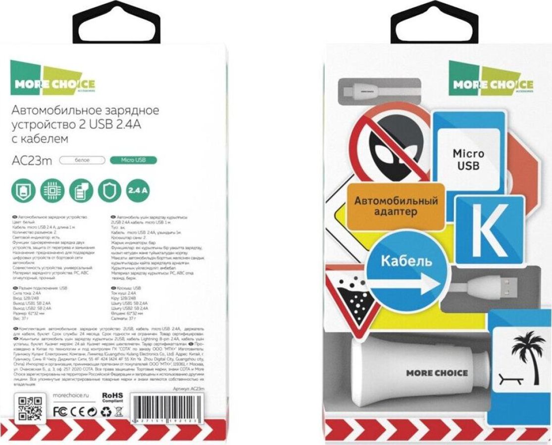 MORE CHOICE AC23m АЗУ 2USB 2.4A для micro USB Black