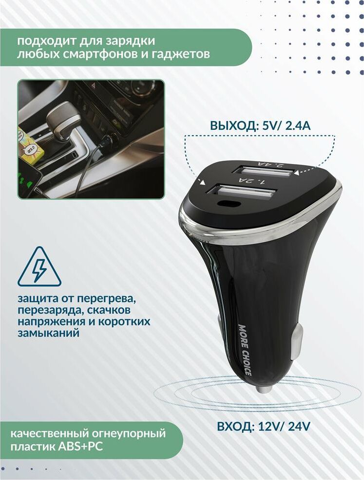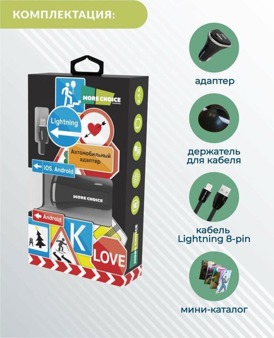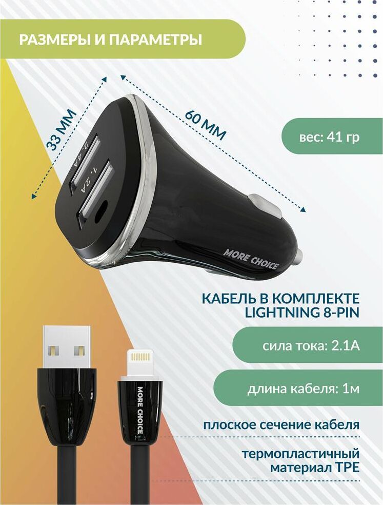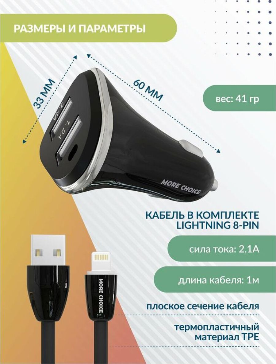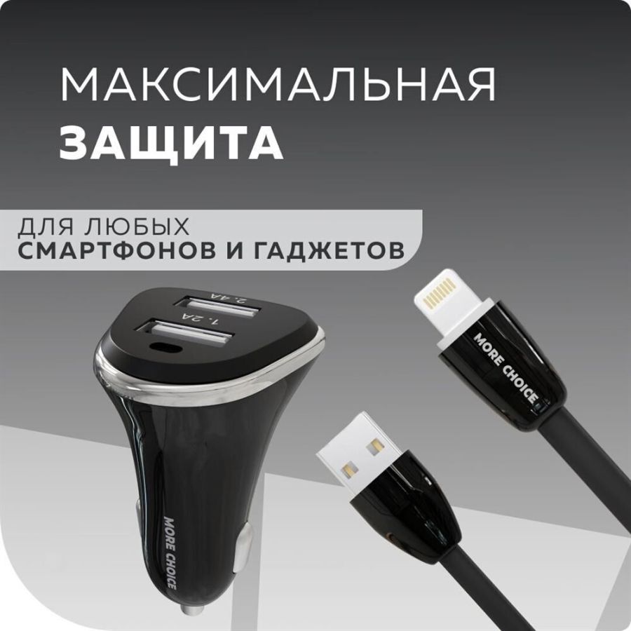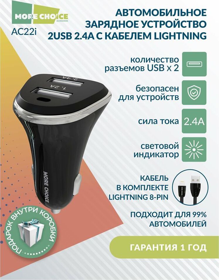 MORE CHOICE AC22i АЗУ 2USB 2.4A для 8-pin Black