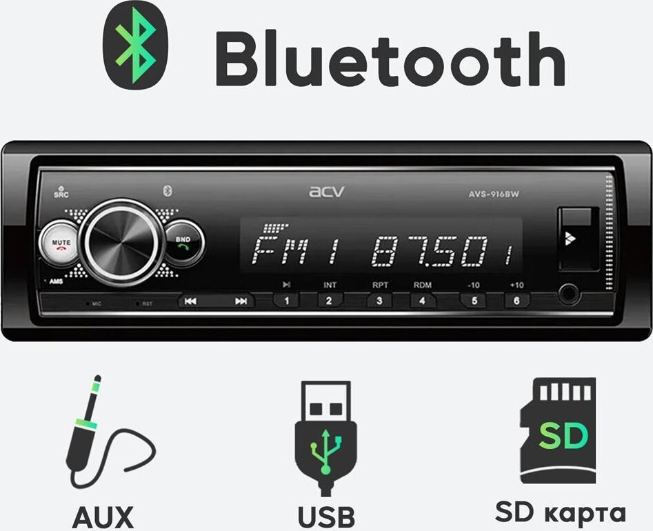 Bluetooth: Да Радиус беспроводной связи: 5-7 м Дополнительно: Bluetooth: A2DP, HFP (ver. 4.0), PBAP Проигрыватель медиафайлов Файловая система: FAT16/32 Соотношение сигнал-шум аудио: 85 дБ Диапазон воспроизводимых частот: 20Гц-20 кГц Поддерживаемые форматы аудио: MP3, WMA Стерео разделение: 80 дБ Воспроизведение звука Пиковая мощность: 4х50 Вт Импеданс: 4-8 Ом/канал Эквалайзер: 4 предварительно настроенные установки, 1 пользовательская. Регулировка тембра НЧ/ВЧ ±8дБ Радио Чувствительность радио: 15 мВ Рабочие частоты: FM 87.5- 108 МГц Промежуточная частота: 10,7 МГц Количество ячеек памяти для сохранения настроенных радиостанций: 18 Соотношение сигнал/шум радио: 65 дБ Диапазон принимаемых частот: 30 Гц-15 кГц Общие характеристики Типоразмер: 1 DIN Языки: Русский, English, Chinese и др. Диапазон рабочих температур: -10 +60 °С Вес: 0,5 кг Размеры: 178x90x50 мм Входы / выходы Выходы: RCA стерео аудио выходы Входы: AUX (mini Jack 3.5 mm)