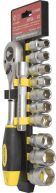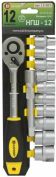 Количество в наборе, шт 12. Присоединительный размер 1/2 дюйма. Тип головок 6-гранные. Количество граней 6. Система измерения метрическая. Min размер головки, мм 10. Max размер головки, мм 24. Трещотка. Размер посадки головки 1/2 дюйма. Посадочный квадрат трещотки. 1/2 дюйма.
