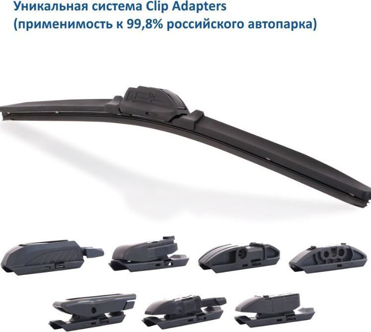 Уникальная система крепления адаптеров Clip Adapters (8 адаптеров на 11 видов крепления) позволяет использовать GOODYEAR PREMIUM на 99,8% всех моделей легковых автомобилей, в том числе с правым рулём Резиновое лезвие класса Triple A (ААА). Лезвие проходит процедуру полировки удаление шероховатостей поверхности. Спойлер щетки Симметричный. Симметричный спойлер уникален в своём классе и выполнен из термопластичного эластомера, что делает его устойчивым к деформациям. Выполнен в виде литой конструкции и не имеет боковых заглушек, что значительно снижает обмерзание краёв щётки.