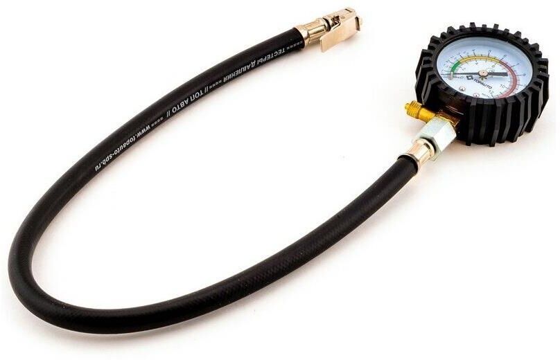 Автомобильный манометр для шин отечественного производителя TOPAUTO максимально возможным давлением 12 атм. ориентирован прежде всего на использование с грузовыми и коммерческими автомобилями, а также автобусами и крупной спецтехникой – для измерения давления в их шинах. Практичный металлический корпус, защитный резиновый чехол, масло-и бензостойкий шланг, компактные размеры. Есть клапан сброса давления. Упаковка - блистер.