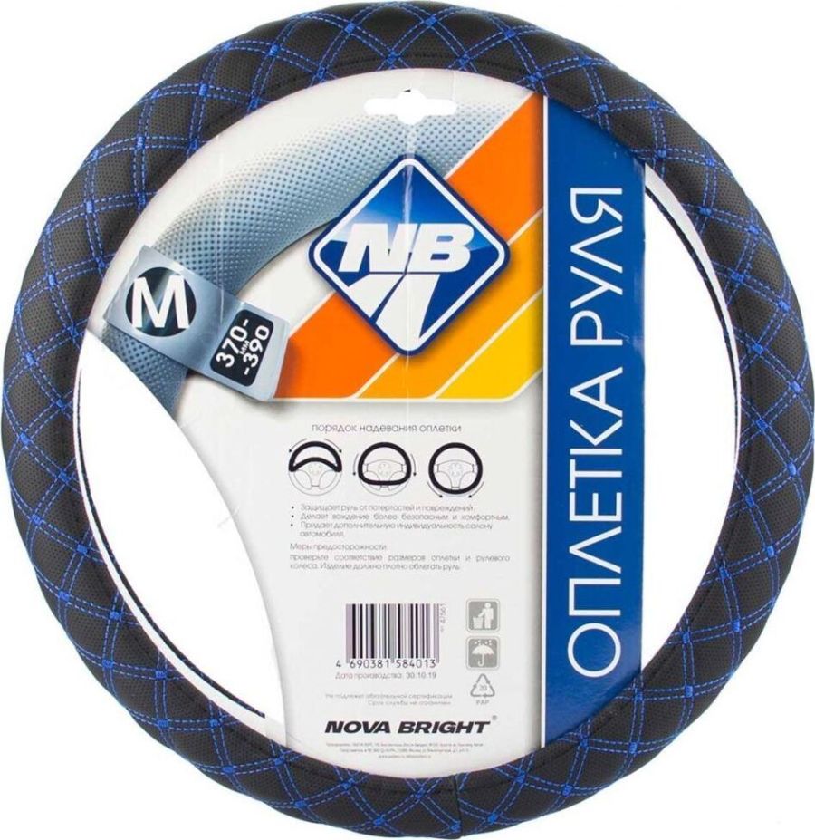 Оплетка на руль NOVA BRIGHT (M) экокожа, черная с прострочкой синей ромбиками 47561 в интернет магазине КорБТ