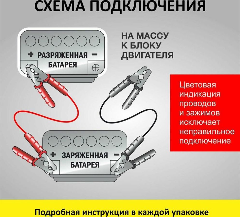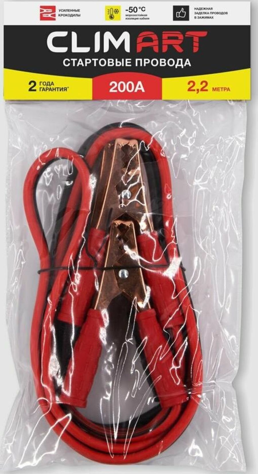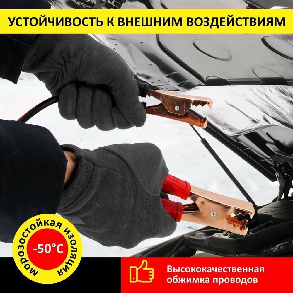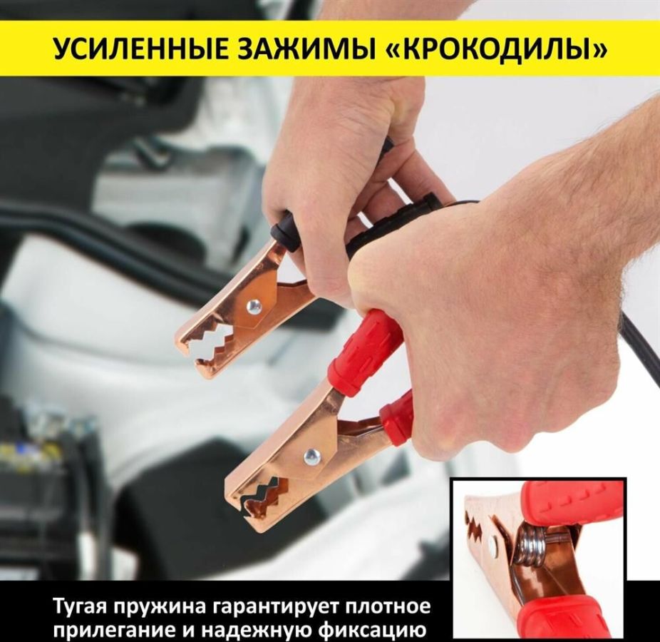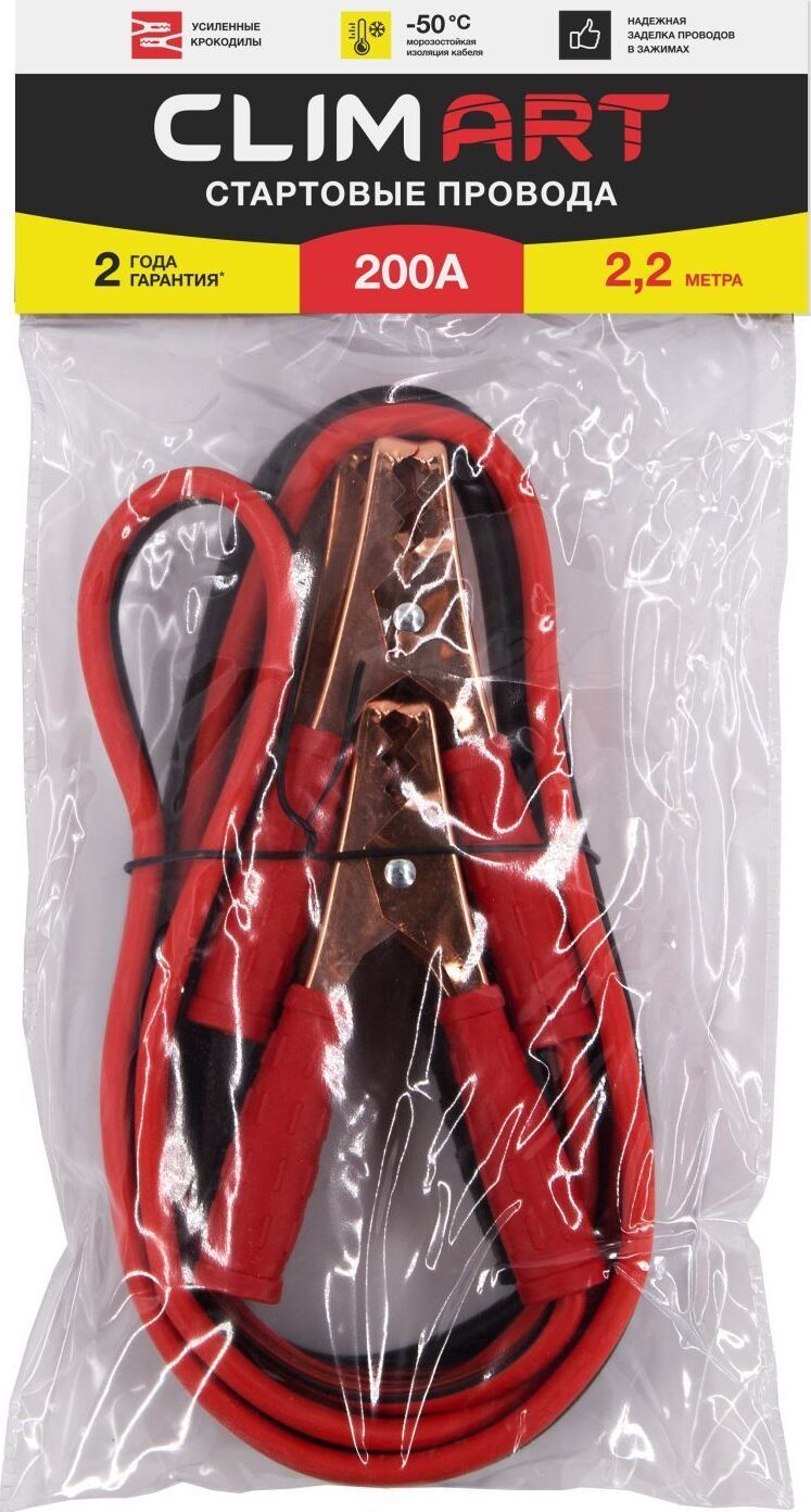 Провода прикуривания " Пусковой ток: 200 А " Длина: 2,2 м " Вес: 0,65 кг Устройство оснащено изолированными усиленными зажимами "крокодил" для подключения к аккумуляторной батарее. Высококачественная обжимка проводов обеспечивает высокую устойчивость к механическим повреждениям. Благодаря морозостойкой изоляции до -50С провода прикуривания можно использовать при любых погодных условиях.