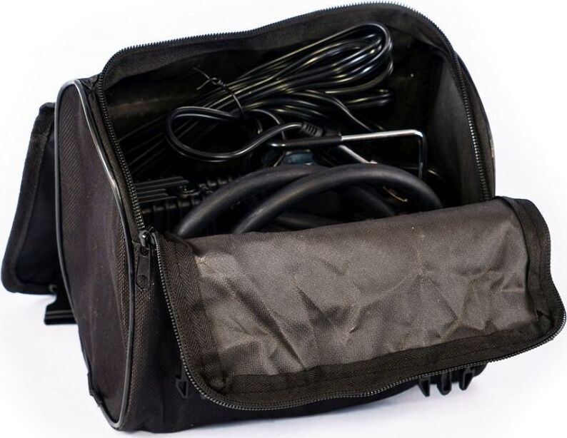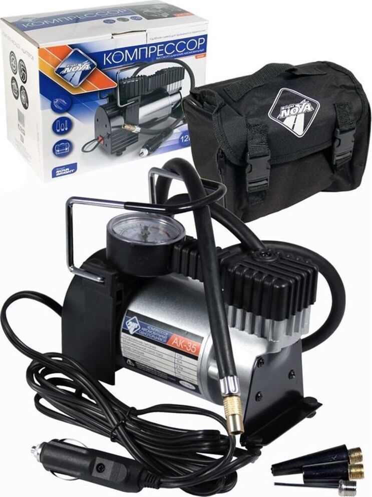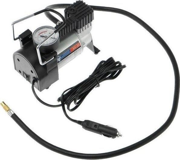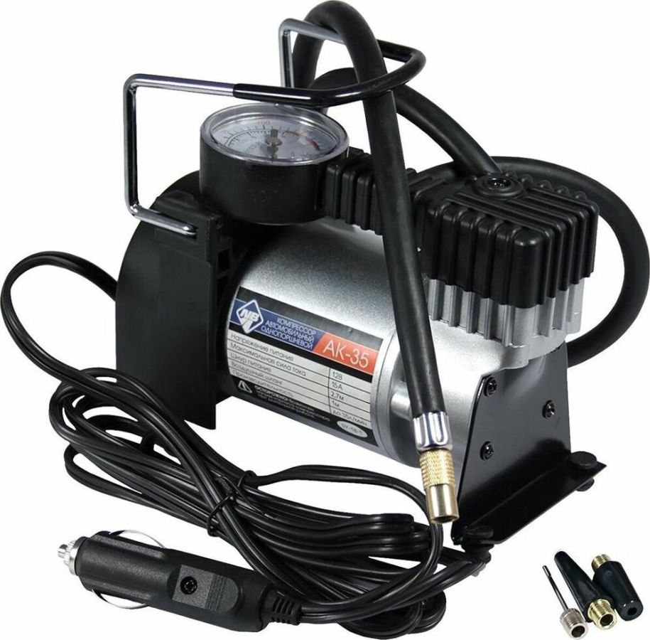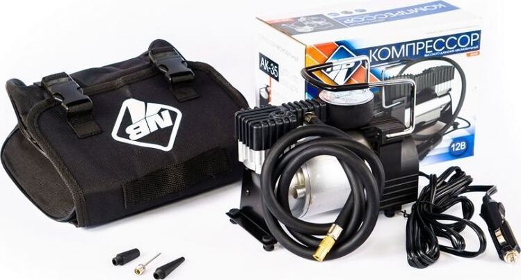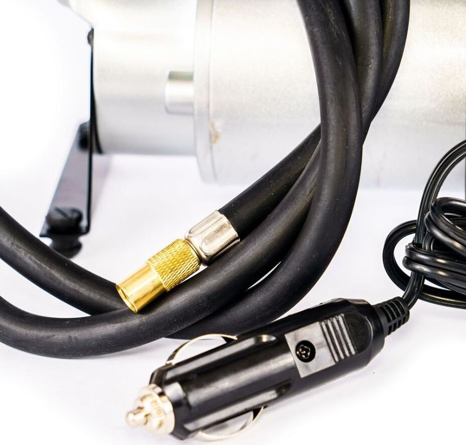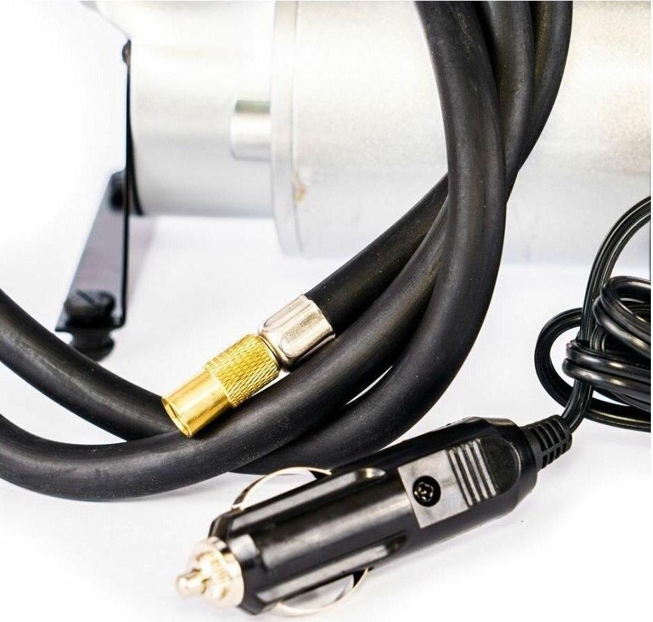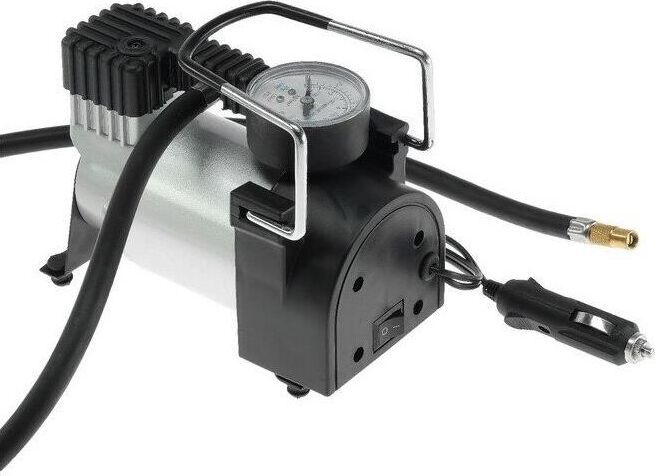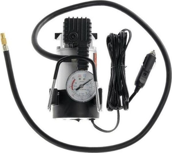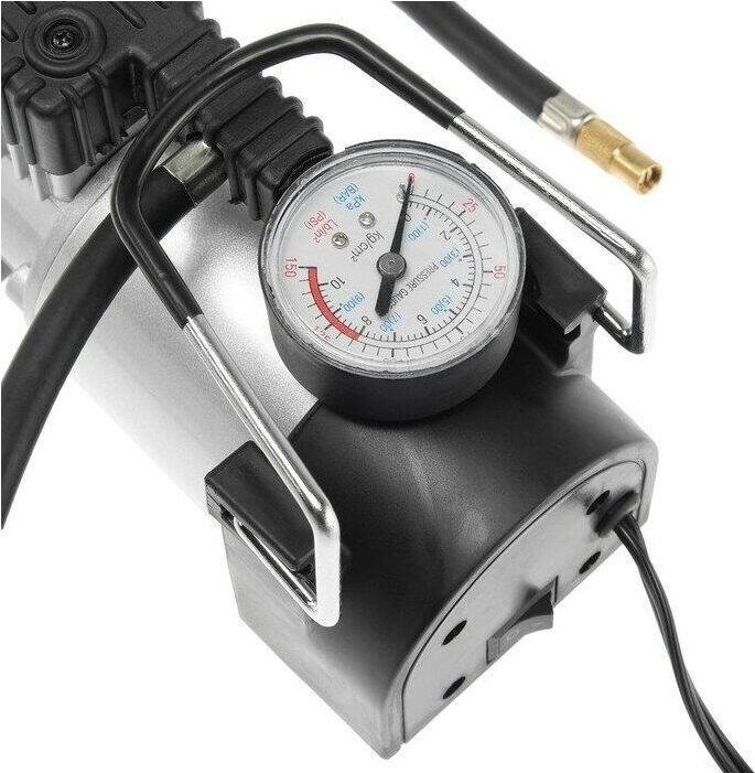 Мощность – 150 Вт. Максимальная сила тока – 15 А. Максимальное давление – до 10 кг/см2 (140PSI/10Bar) Производительность – до 35 л/мин. Шнур питания – 2,7 м. Воздушный шланг – 1м. Тканевая сумка для хранения и переноски Питание от гнезда прикуривателя Комплект насадок-переходников – 3 шт. Встроенный в штекер питания предохранитель Цвет- серебро Напряжение питания — 12В. Состав: металл, пластик